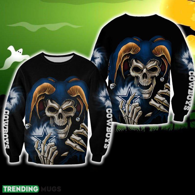So, whether you’re heading to a costume party, trick-or-treating with the kids, or simply want to spread some holiday cheer, the Dallas Cowboys Halloween Clown Singing Ugly Sweater is a must-have. Get ready to turn heads and make a statement with this one-of-a-kind, hilarious sweater. Order yours today and let the Halloween and Christmas celebrations begin!