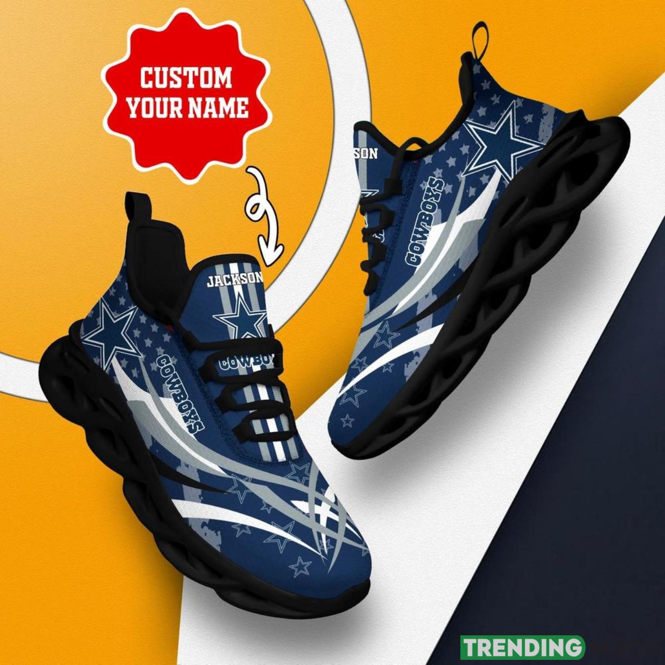 Whether you’re heading to the stadium, watching the game from home, or simply want to show off your team spirit, our Dallas Cowboys NFL Football Fans Max Soul Shoes Sneakers are the ultimate accessory. Don’t miss out on the opportunity to own these one-of-a-kind, personalized name gifts. Get yours today and let your Cowboys pride shine!