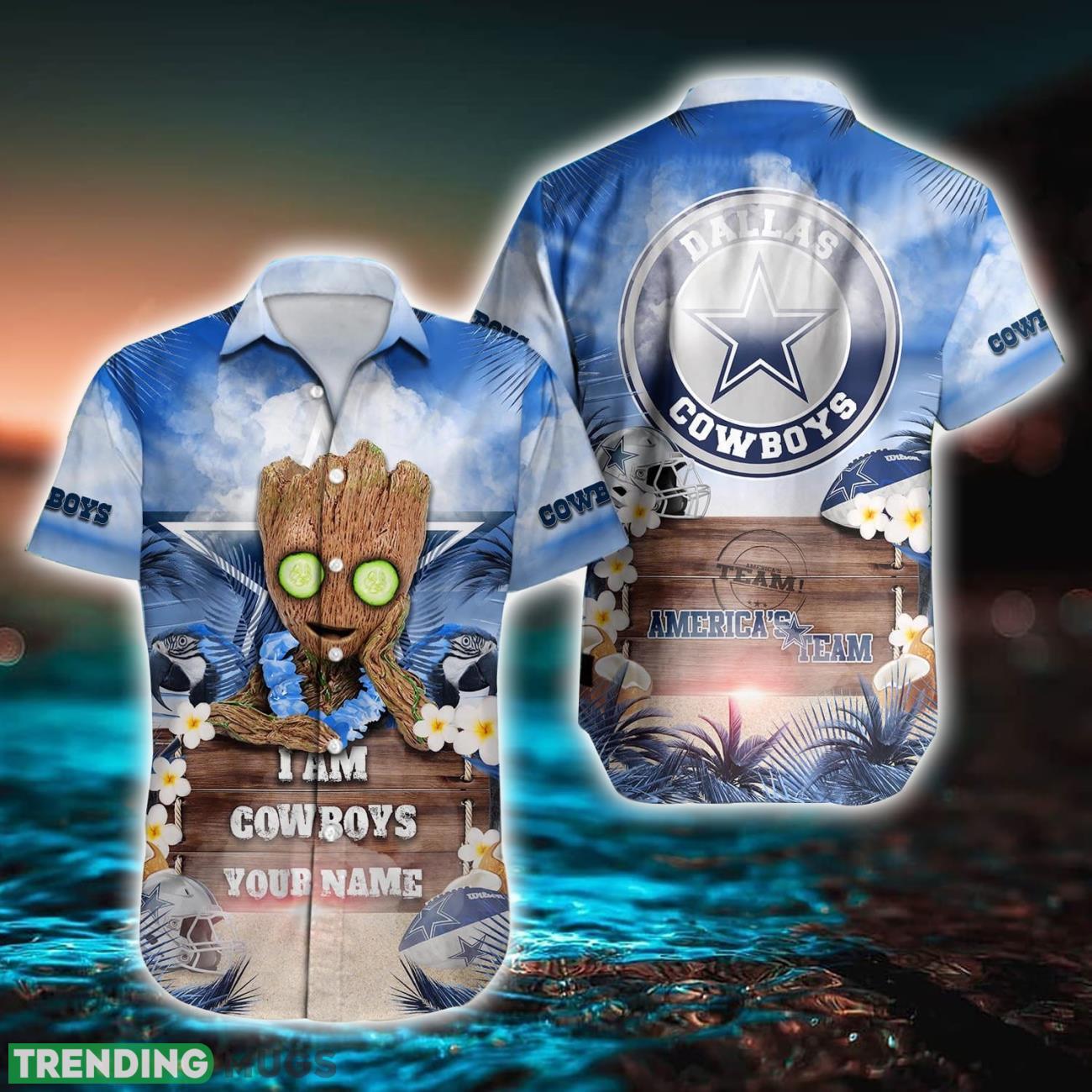 Don’t miss out on this opportunity to combine your love for the Dallas Cowboys and Baby Groot in a stylish and personalized way. Order your Dallas Cowboys NFL Hawaiian Shirt with custom name today and let your fandom shine!