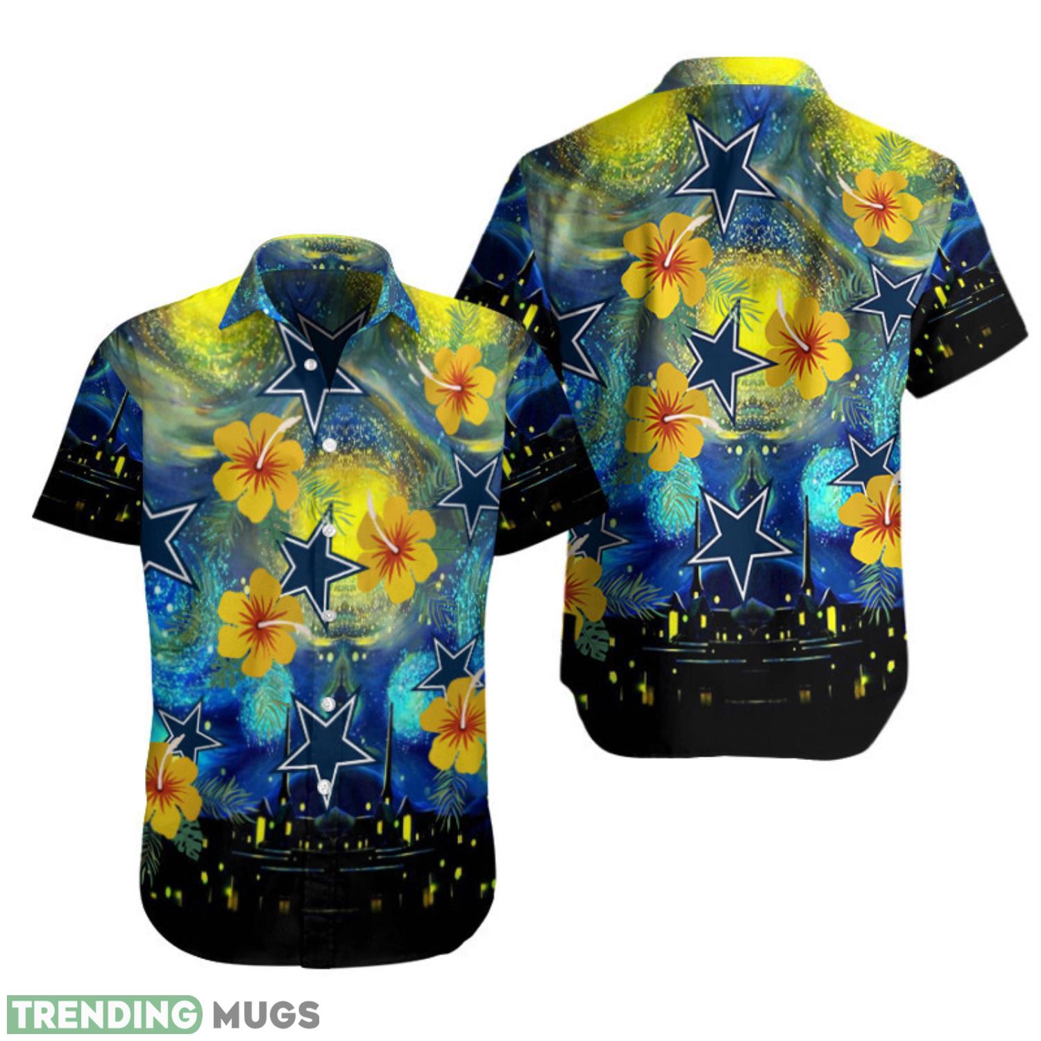 Dallas Cowboys Personalized Hawaiian Shirt For Fans 3D Button Shirt Yellow Flower Pattern Hawaiian Shirt