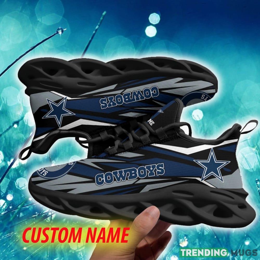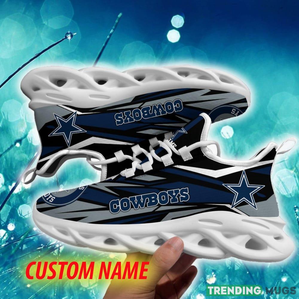 This Dallas Cowboys Trademark Custom Name Chunky Sneaker AOP Gift Fans Max Soul Shoes is a breathable, lightweight, and comfortable casual outdoor shoe that has a unique design. It is made of a mesh fabric which makes it sweat absorbent and breathable, while the rubber bottom ensures traction, comfort, and durability. It is available in two colors: black or white sole. There are two styles of shoelace holes so you can choose your preference.
