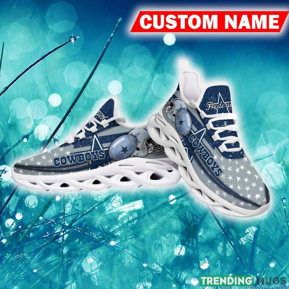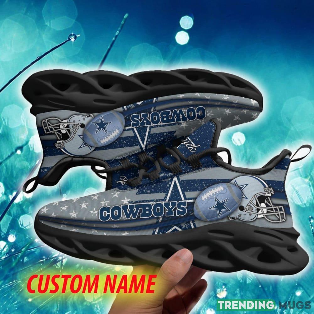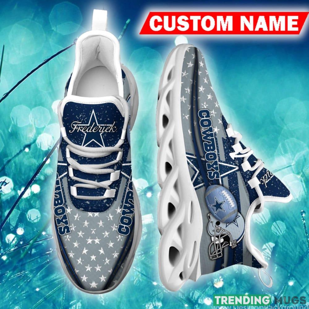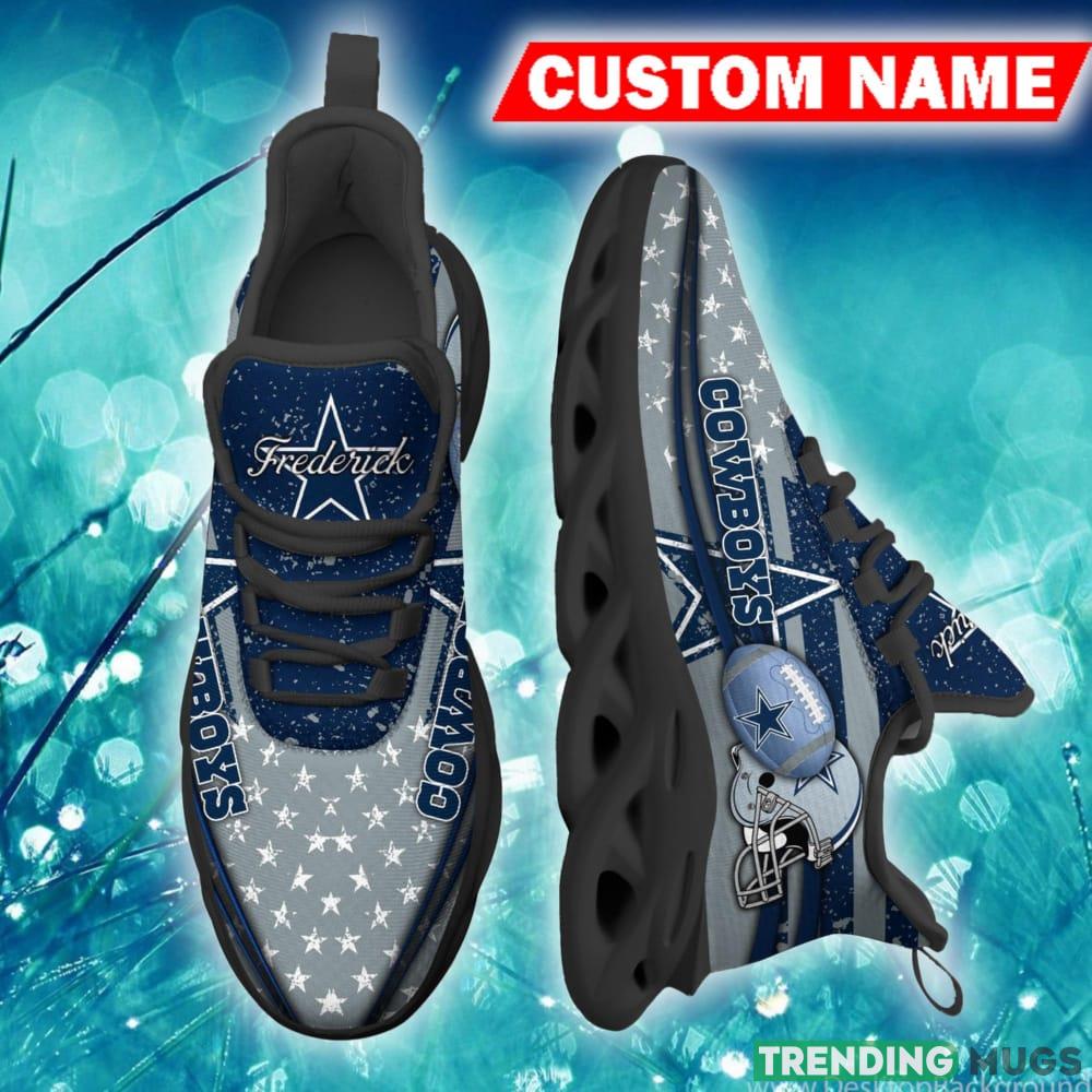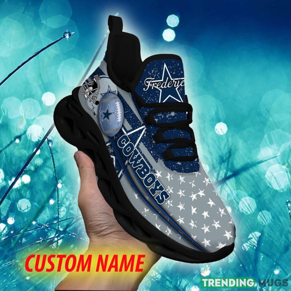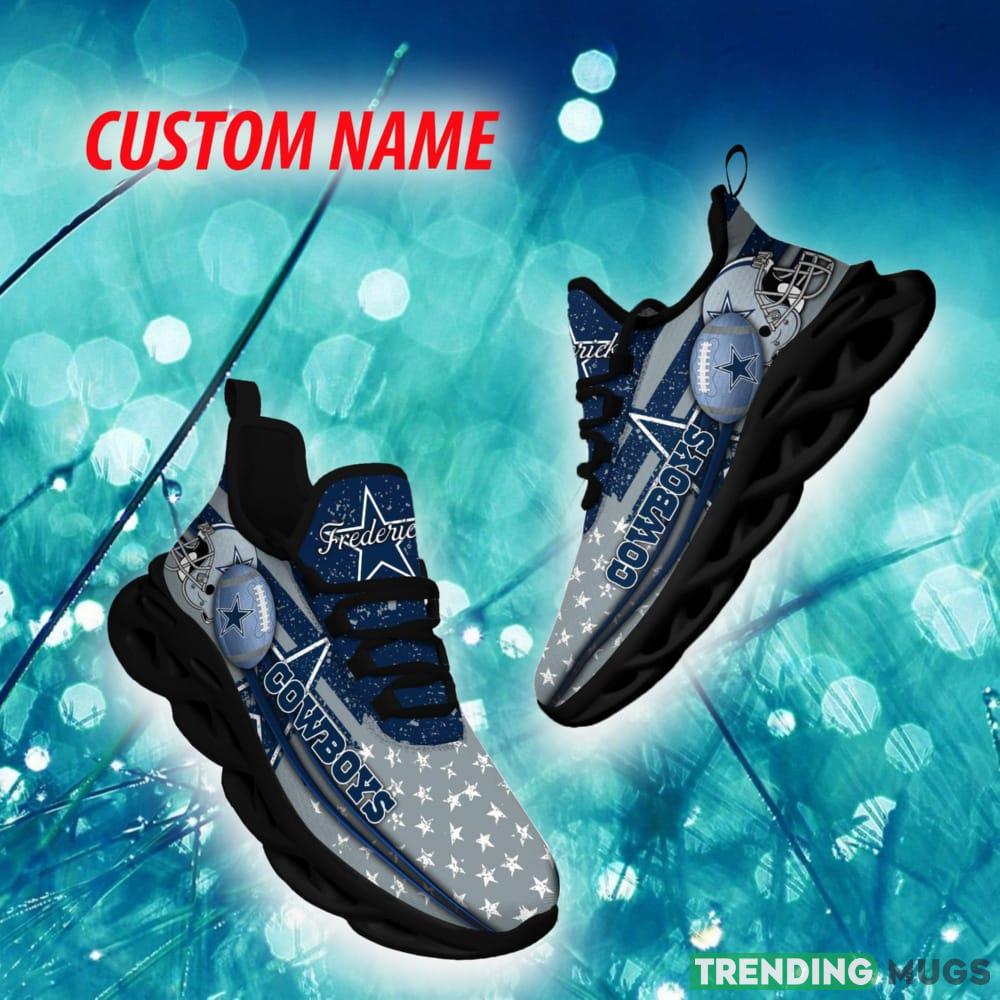 This Dallas Cowboys Trendsetter Custom Name Chunky Sneaker AOP Gift Fans Max Soul Shoes is a breathable, lightweight, and comfortable casual outdoor shoe that has a unique design. It is made of a mesh fabric which makes it sweat absorbent and breathable, while the rubber bottom ensures traction, comfort, and durability. It is available in two colors: black or white sole. There are two styles of shoelace holes so you can choose your preference.