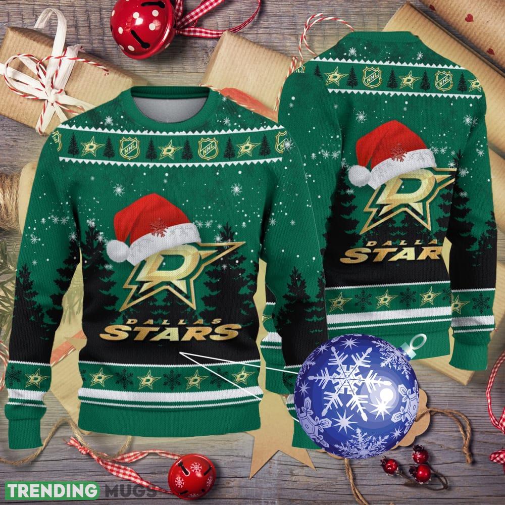 Dallas Stars Logo Golden Fans Santa Hat Tree Knitted Xmas 3D Sweater – Dallas Stars Logo Golden Fans Santa Hat Tree Knitted Xmas 3D Sweater