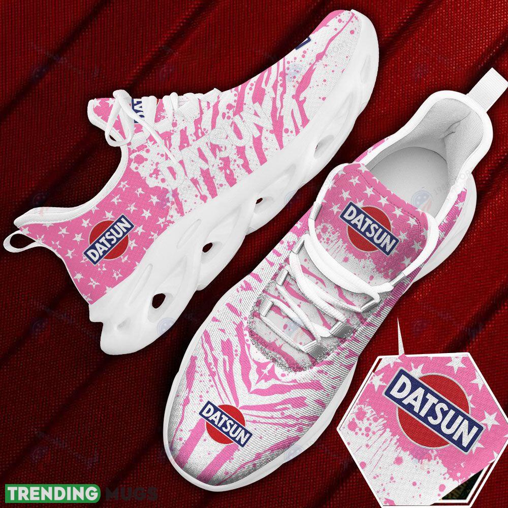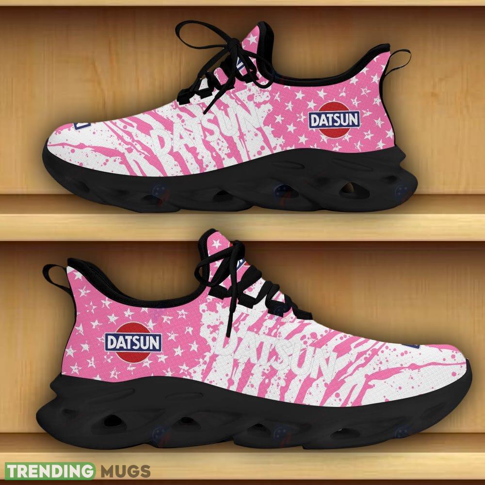 This Datsun Car And Motorcycle Racing Chunky Shoes Pink Max Soul Sneakers For Men Women is a breathable, lightweight, and comfortable casual outdoor shoe that has a unique design. It is made of a mesh fabric which makes it sweat absorbent and breathable, while the rubber bottom ensures traction, comfort, and durability. It is available in two colors: black or white sole. There are two styles of shoelace holes so you can choose your preference.