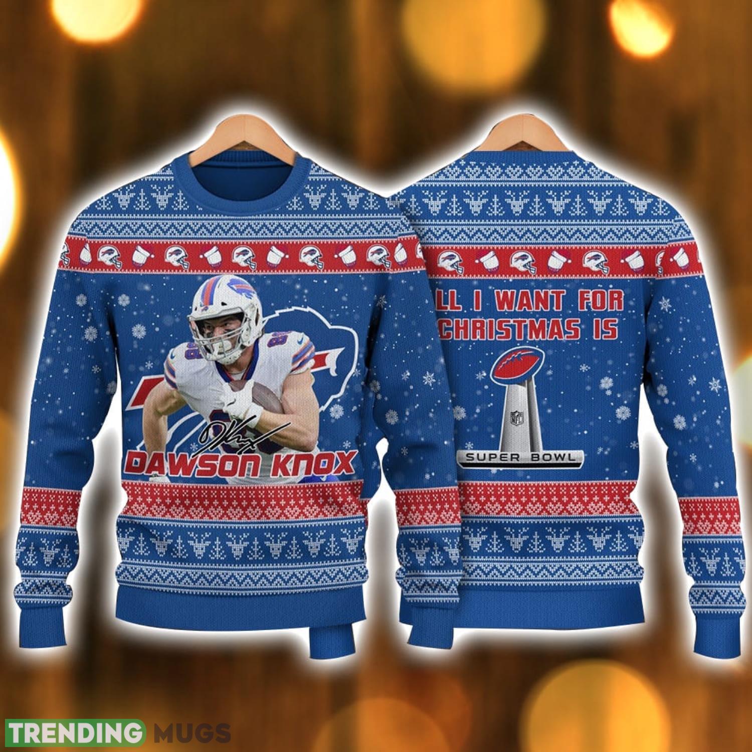 Dawson Knox Buffalo Bills All I Want For Christmas NFL Ugly Christmas Sweater Christmas Gift For Sport Fans Product Photo 1