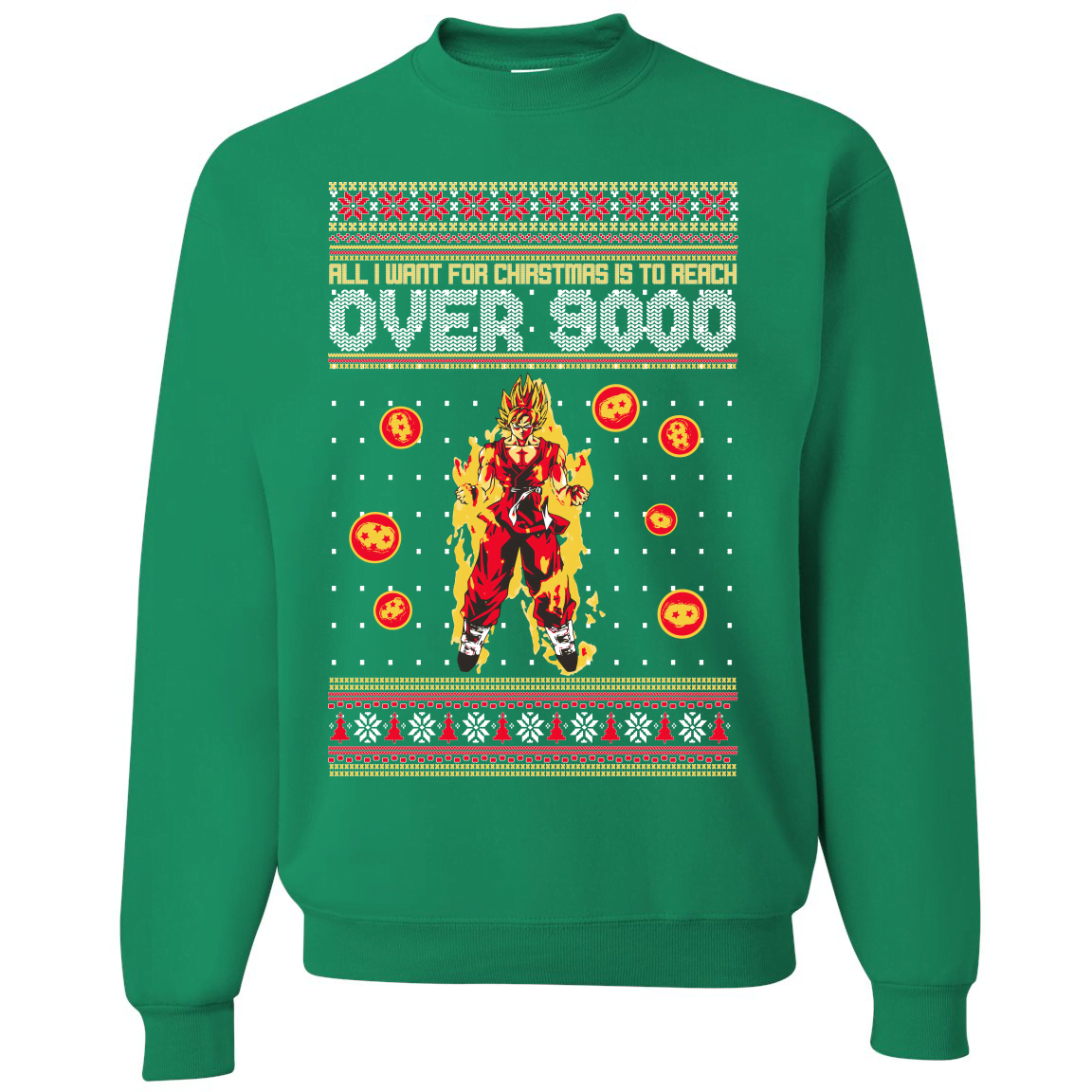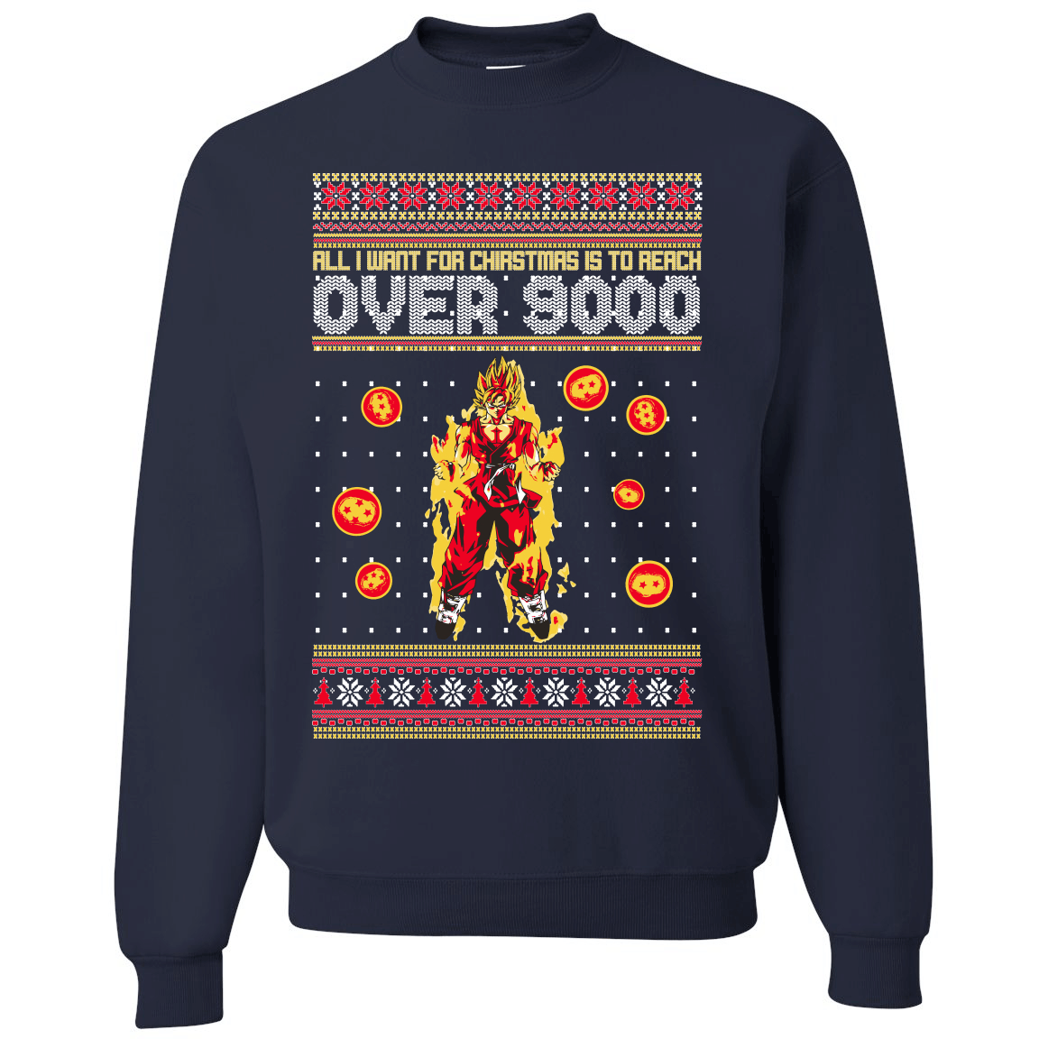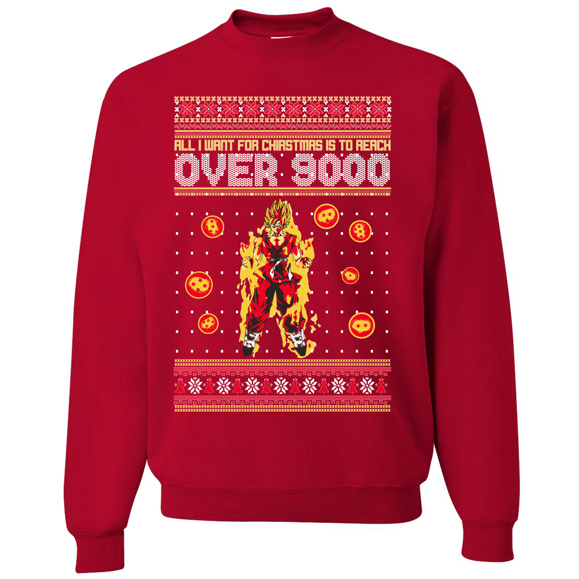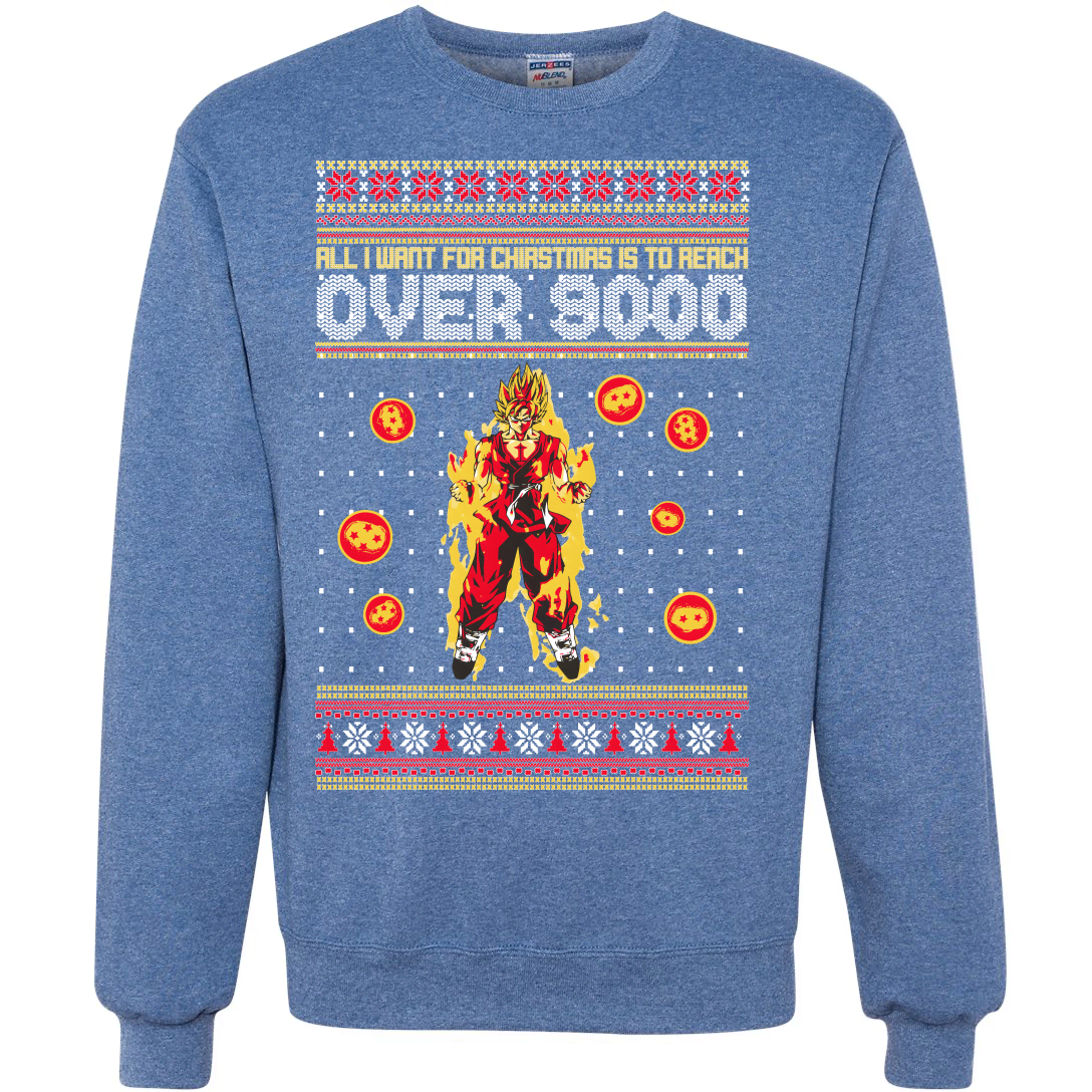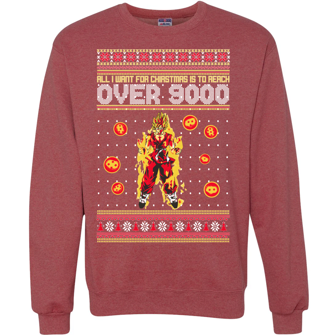 DBZ Anime Cartoon Fan Reach Over 9,000 Christmas Sweatshirt. Make a great gift for fans of DBZ.