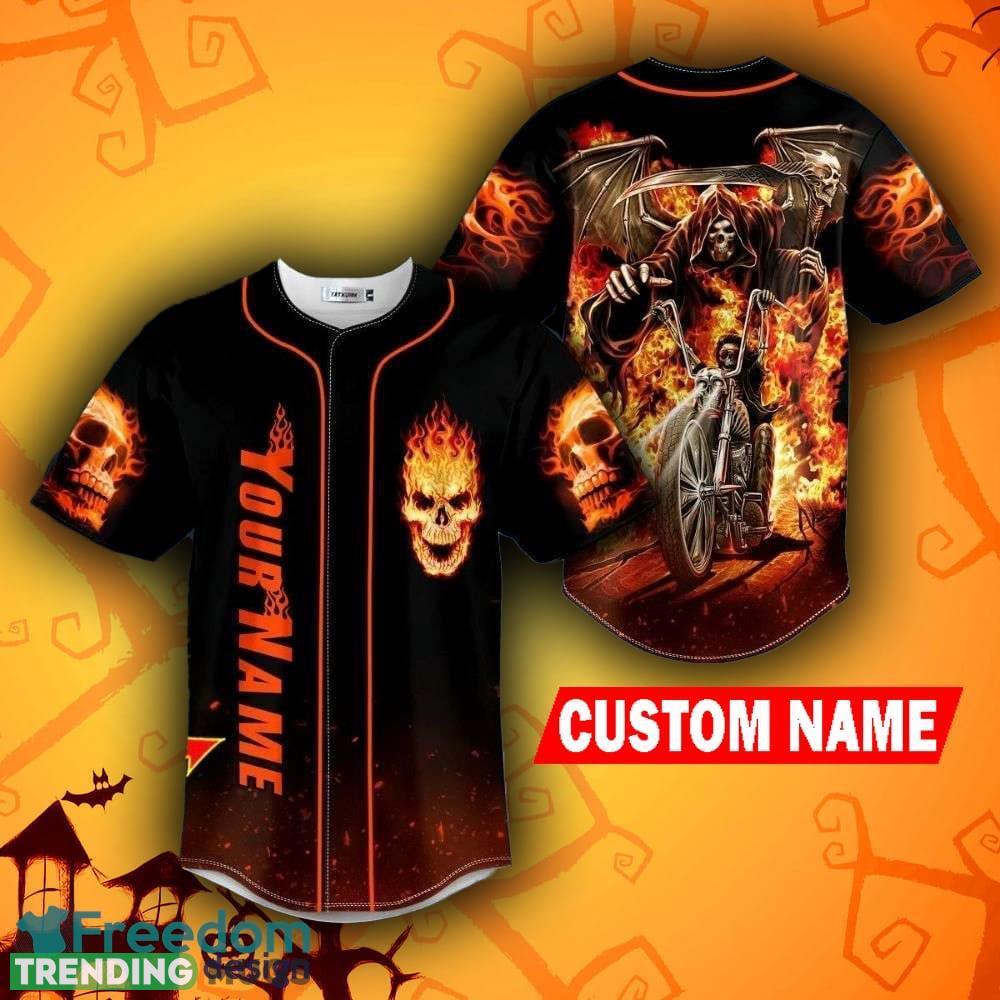 Dead Racer Ghost Rider Fire Halloween Skull Holiday Baseball Jersey Shirt Custom Name