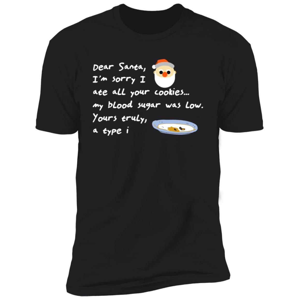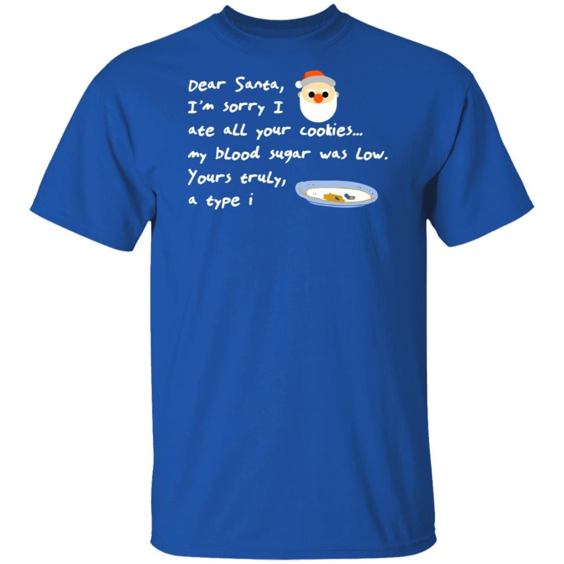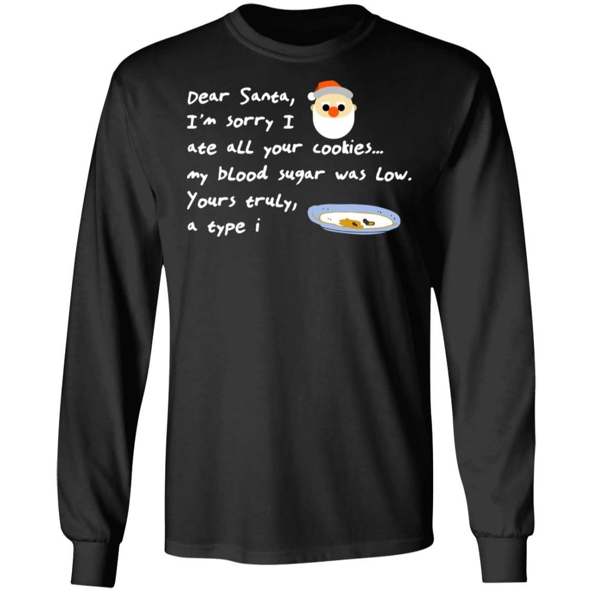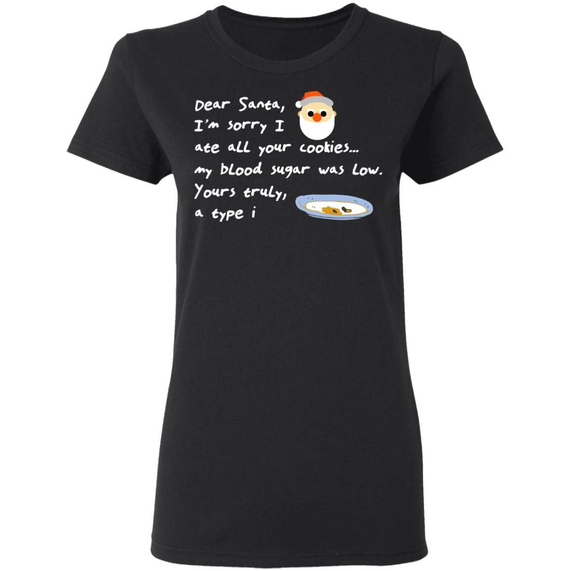 Dear Santa I’m Sorry I Ate All Your Cookies… My Blood Sugar Was Low. Your Truyly, a type I. This cute shirt available in t-shirt, hoodies, long sleeve and tank top
