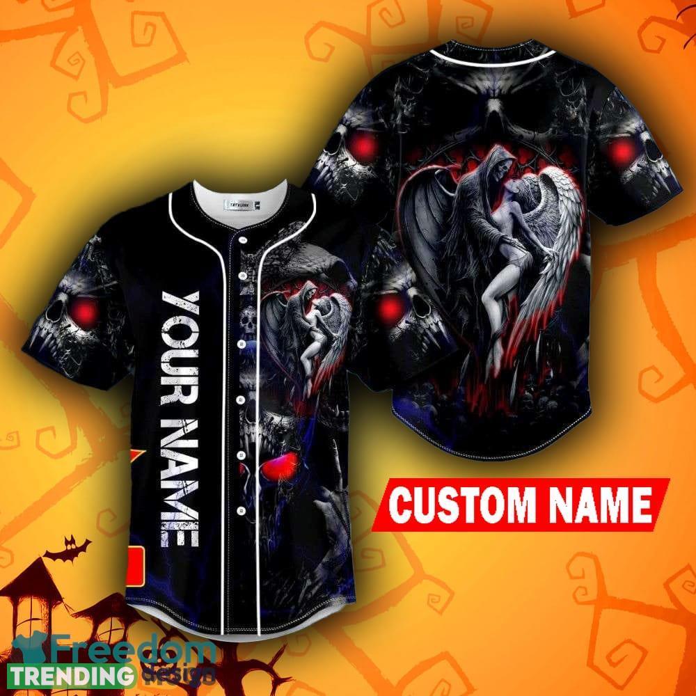 Death And Angel Forbidden Couple Love Halloween Skull Holiday Baseball Jersey Shirt Custom Name Information: