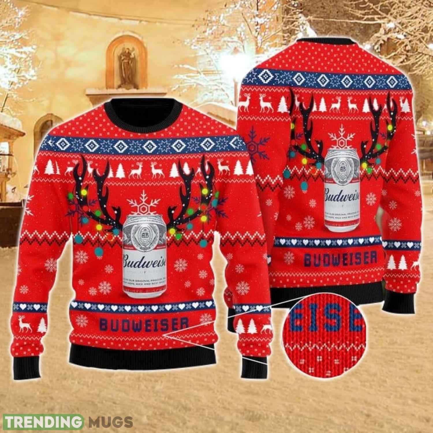 Deer Budweiser Cute Gift Ugly Christmas Sweater Product Photo 1