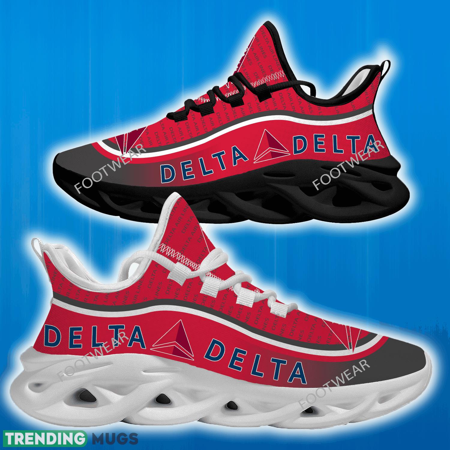 This delta air lines Brand Logo New Text Max Soul Shoes For Men Women Running Sneaker is a breathable, lightweight, and comfortable casual outdoor shoe that has a unique design. It is made of a mesh fabric which makes it sweat absorbent and breathable, while the rubber bottom ensures traction, comfort, and durability. It is available in two colors: black or white sole. There are two styles of shoelace holes so you can choose your preference.