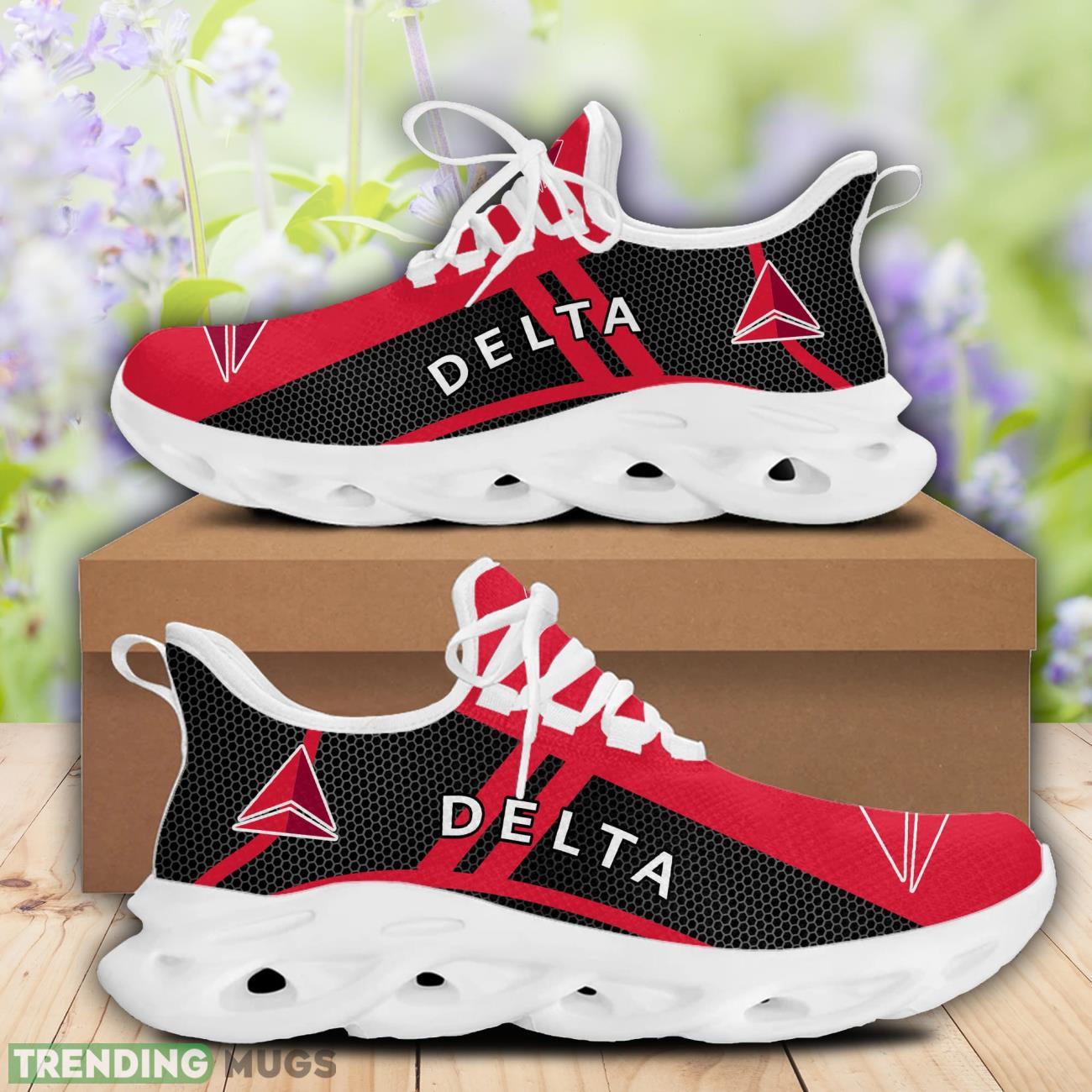 This Delta Air Lines Max Soul Sneakers Striped Style Men Women Sport Shoes is a breathable, lightweight, and comfortable casual outdoor shoe that has a unique design. It is made of a mesh fabric which makes it sweat absorbent and breathable, while the rubber bottom ensures traction, comfort, and durability. It is available in two colors: black or white sole. There are two styles of shoelace holes so you can choose your preference.