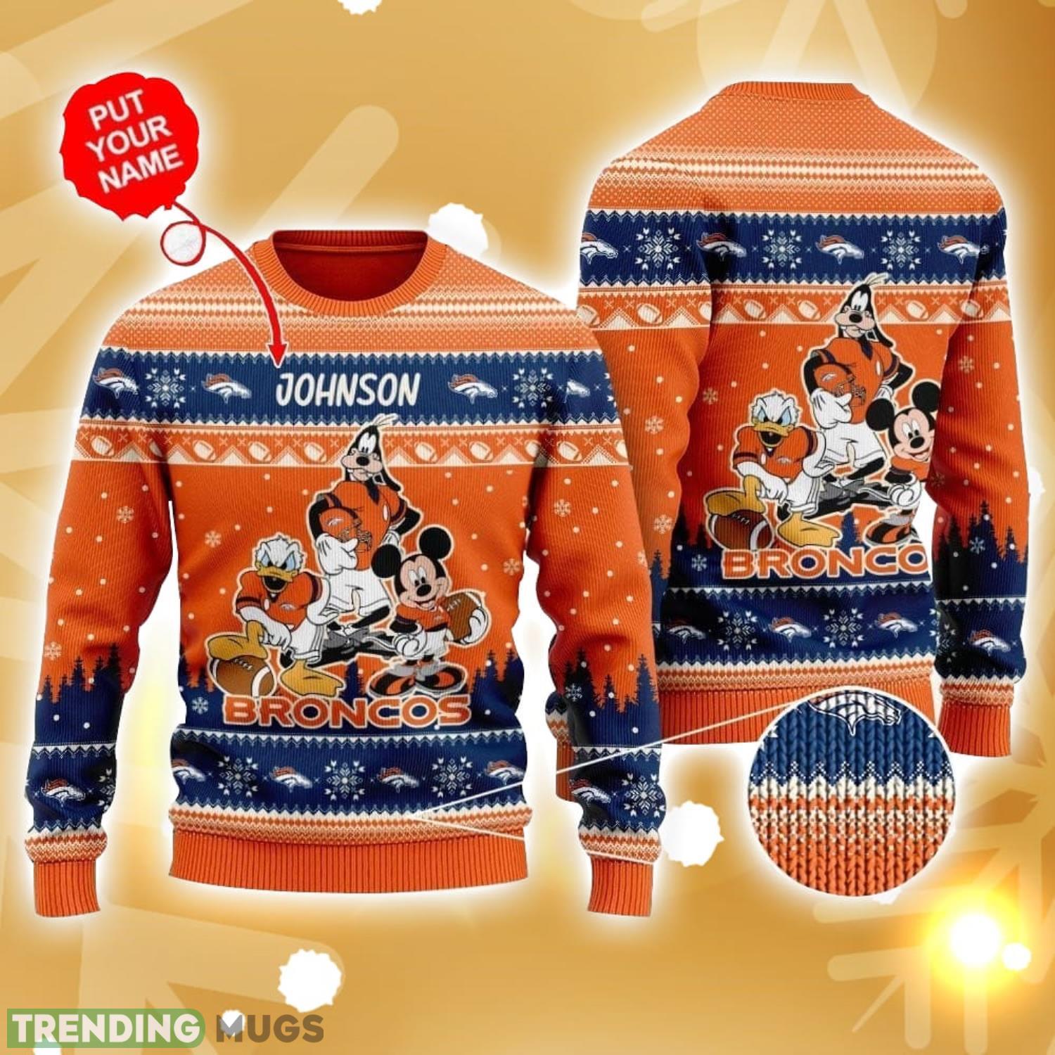 Denver Broncos Disney Donald Duck Mickey Mouse Goofy Custom Name Sport Fans Christmas Gift Ugly Christmas Sweater Informations: