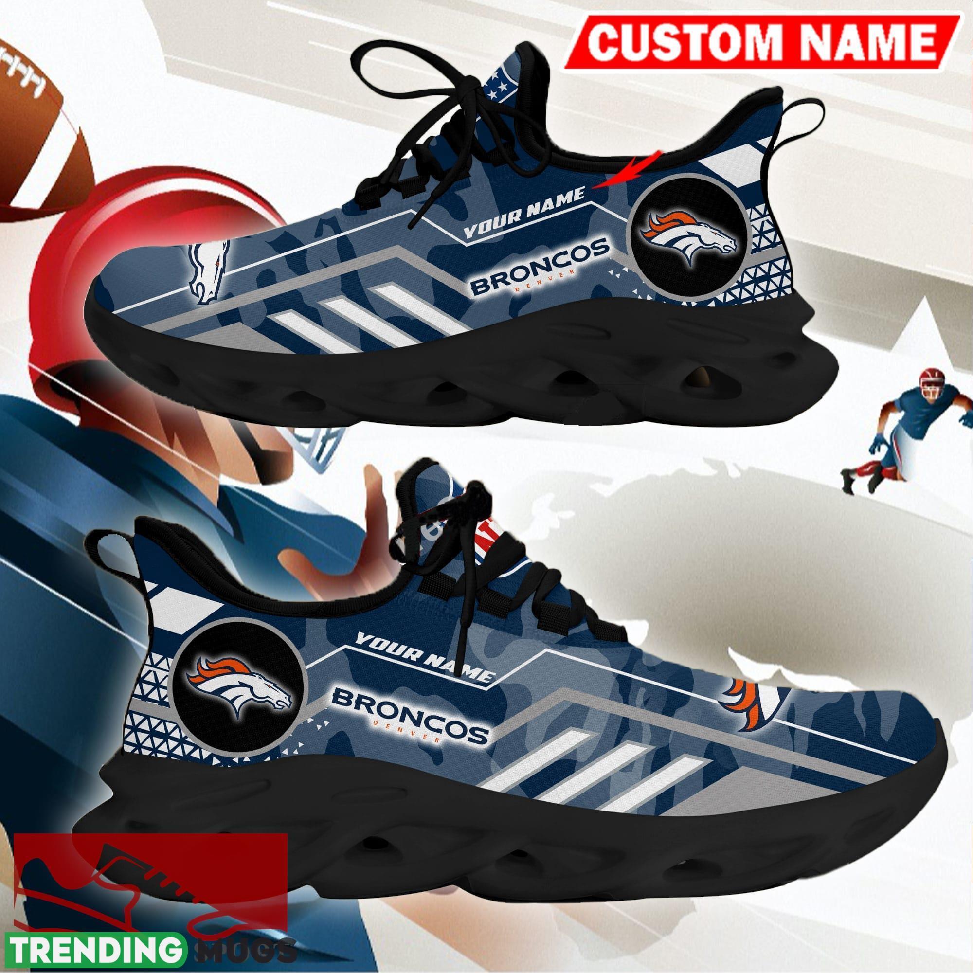 Are you ready to show off your team pride in style? Look no further than our Denver Broncos NFL Logo Chunky Sneakers Camo Navy Max Soul Shoes Personalized! These sneakers are a must-have for any die-hard Broncos fan who wants to make a bold statement wherever they go.