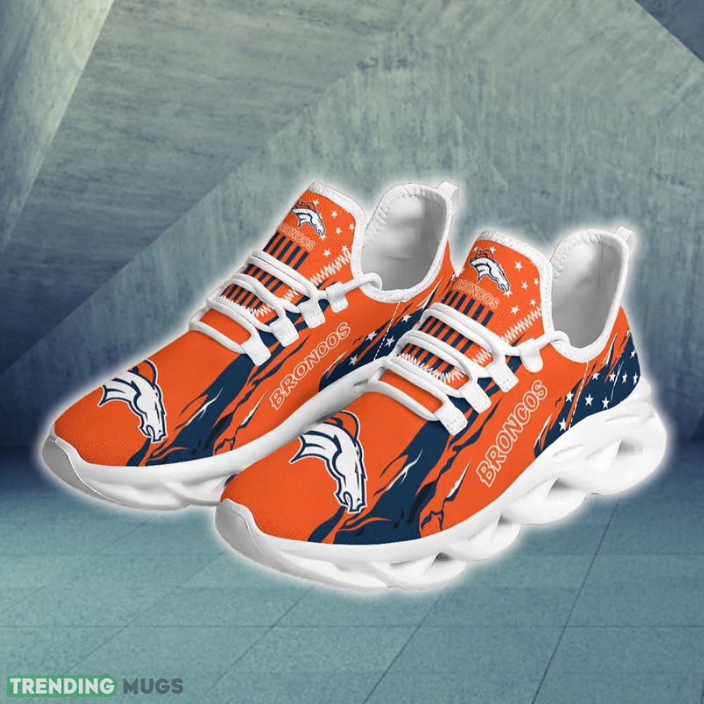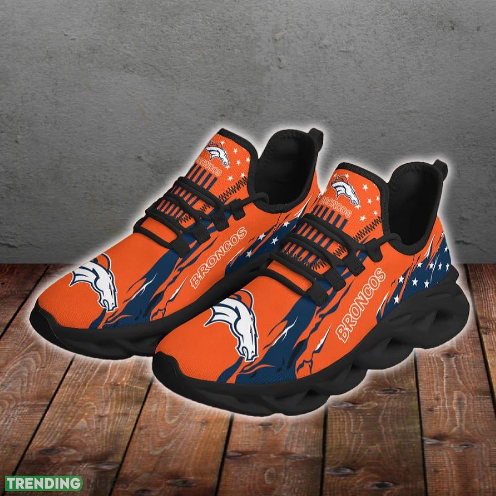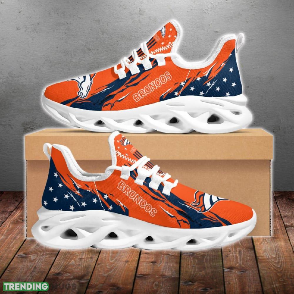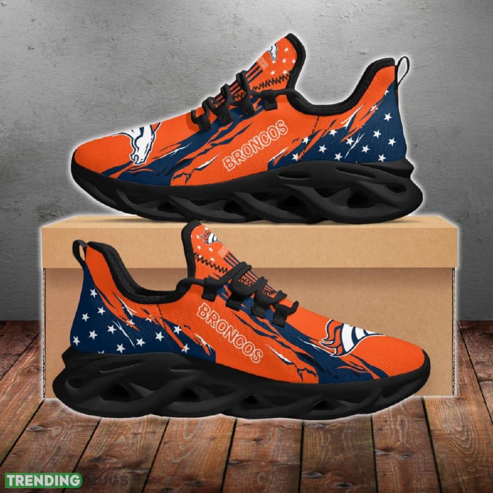 This Denver Broncos Stars and Stripes Attitude Chunky Shoes New Max Soul Sneakers Men Gift is a breathable, lightweight, and comfortable casual outdoor shoe that has a unique design. It is made of a mesh fabric which makes it sweat absorbent and breathable, while the rubber bottom ensures traction, comfort, and durability. It is available in two colors: black or white sole. There are two styles of shoelace holes so you can choose your preference.