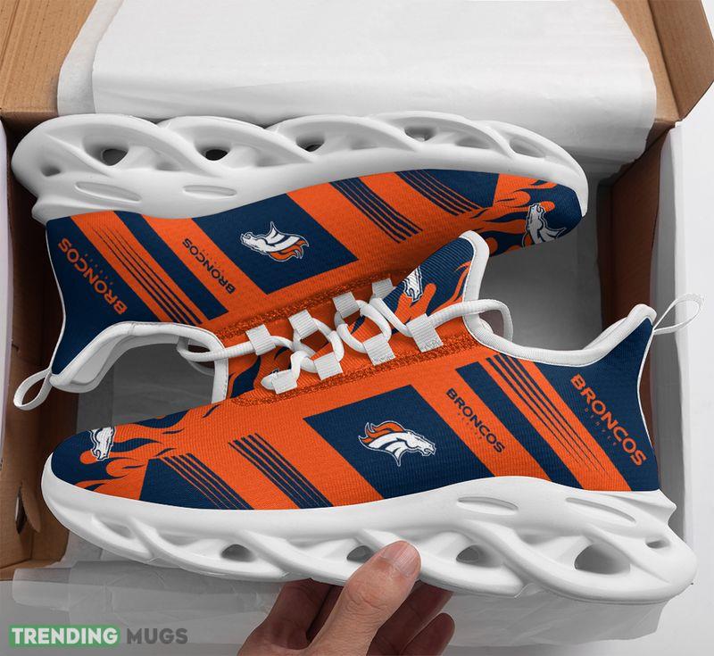 This Denver Broncos Stripe and Fire Pattern Max Soul Shoes Identifier Sport Sneakers is a breathable, lightweight, and comfortable casual outdoor shoe that has a unique design. It is made of a mesh fabric which makes it sweat absorbent and breathable, while the rubber bottom ensures traction, comfort, and durability. It is available in two colors: black or white sole. There are two styles of shoelace holes so you can choose your preference.