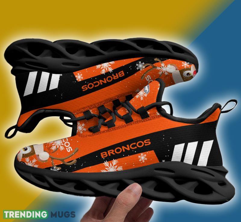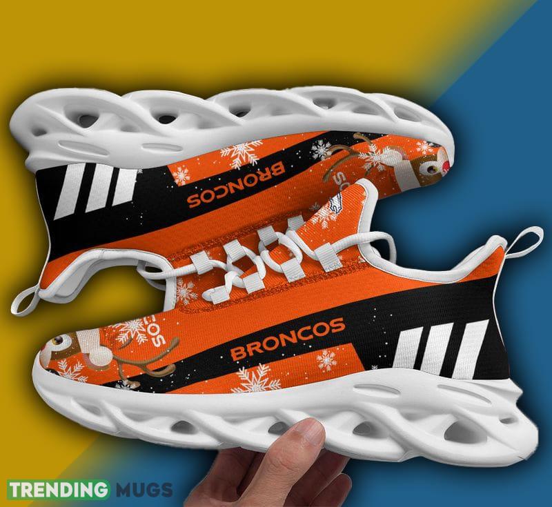 This Denver Broncos X-max Reindeer Max Soul Shoes Vibe Christmas Sneakers is a breathable, lightweight, and comfortable casual outdoor shoe that has a unique design. It is made of a mesh fabric which makes it sweat absorbent and breathable, while the rubber bottom ensures traction, comfort, and durability. It is available in two colors: black or white sole. There are two styles of shoelace holes so you can choose your preference.