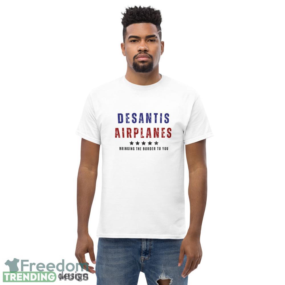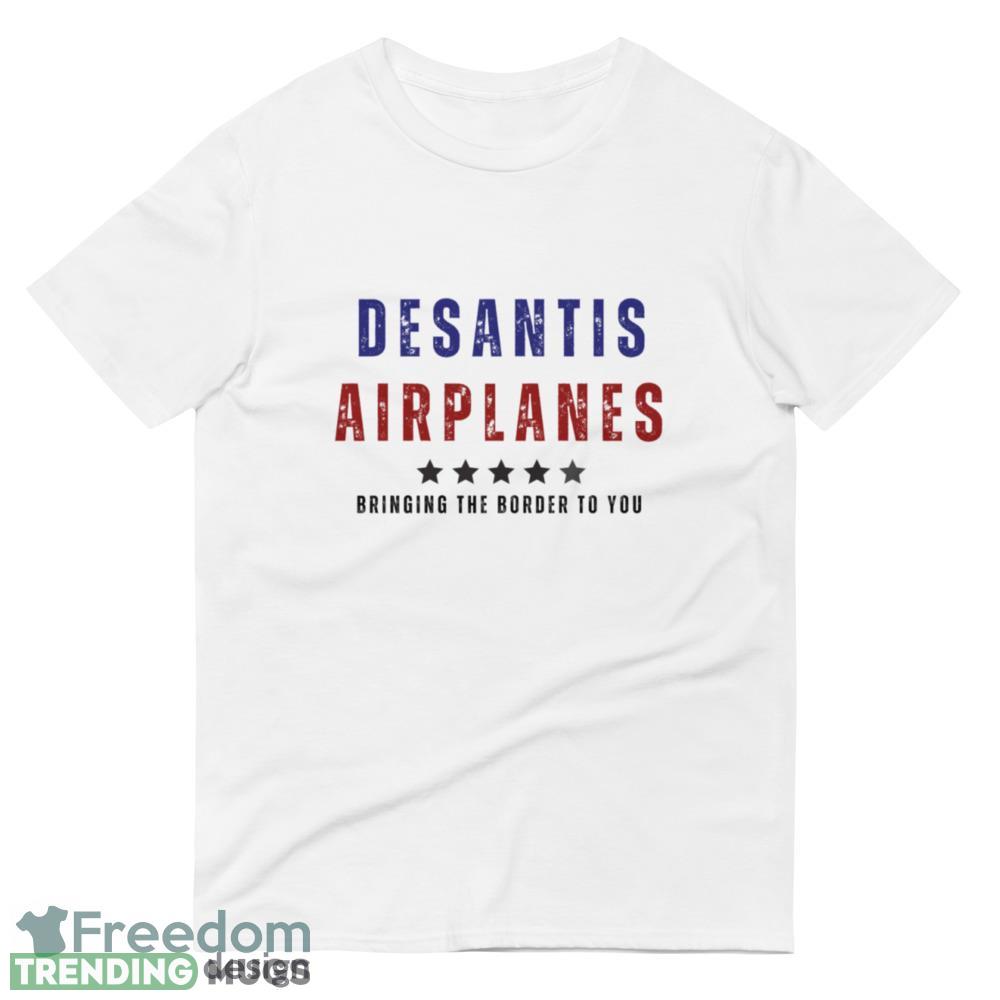 Featuring the DEsantis Airlines logo on the front, this t-shirt adds a playful twist with a funny design that is sure to turn heads. It’s the perfect conversation starter, allowing you to showcase your love for aviation and sense of humor. Whether you’re a frequent flyer or simply an aviation enthusiast, this t-shirt is a must-have addition to your collection.