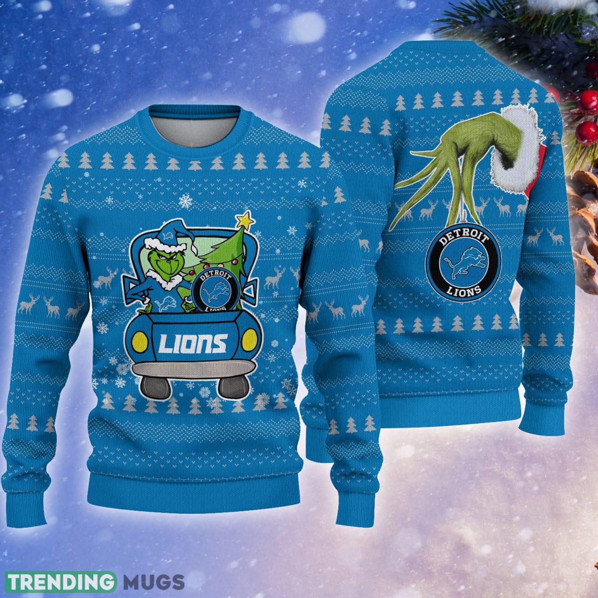 Detroit Lions And Grinch Driving With Pine Trees Knitted Christmas 3D Sweater Gift For Fans Informations: