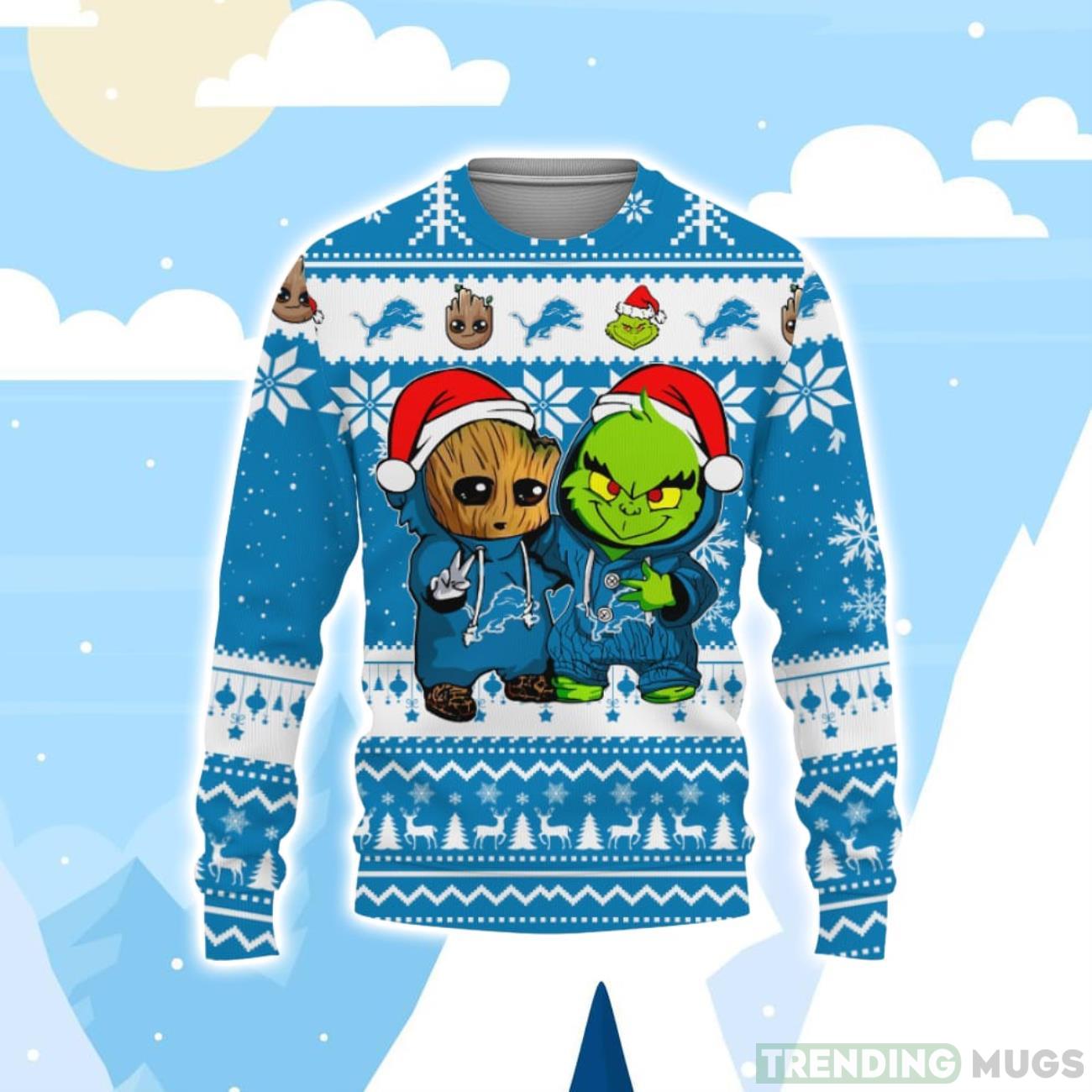 Detroit Lions Baby Groot And Grinch Best Friends Football American Ugly Christmas Sweater Informations: