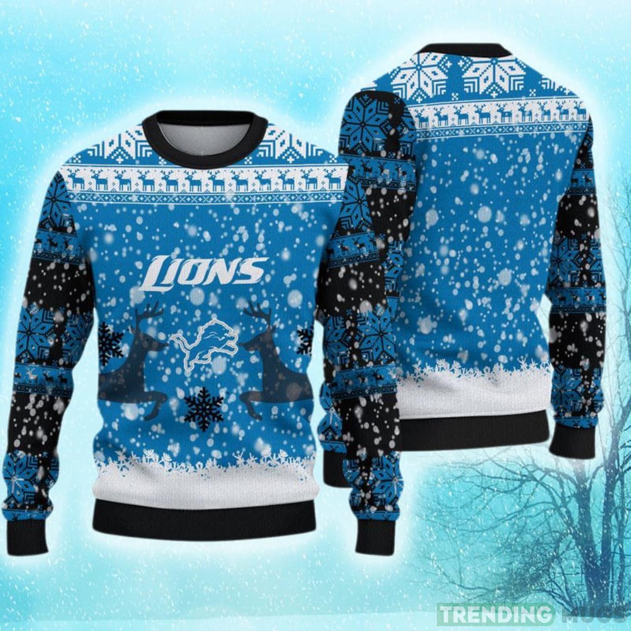 Don’t miss out on this limited edition sweater that is currently trending among Lions fans everywhere! Embrace the holiday spirit while proudly displaying your love for the Detroit Lions with our Christmas Reindeer Hot Trending Ugly Sweater Gift For Fans. Order now and make this holiday season one to remember for all the right reasons!
