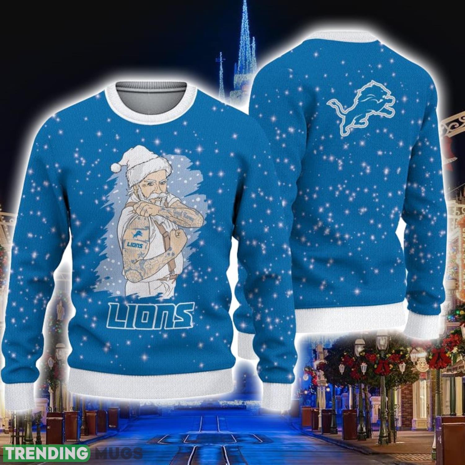 Whether you’re attending a holiday party, cheering on your team from the comfort of your home, or simply enjoying the festivities, our Detroit Lions Christmas Santa Claus Tattoo Ugly Christmas Sweater is the perfect addition to your holiday wardrobe. Don’t miss out on the opportunity to stand out and make a statement this Christmas season!
