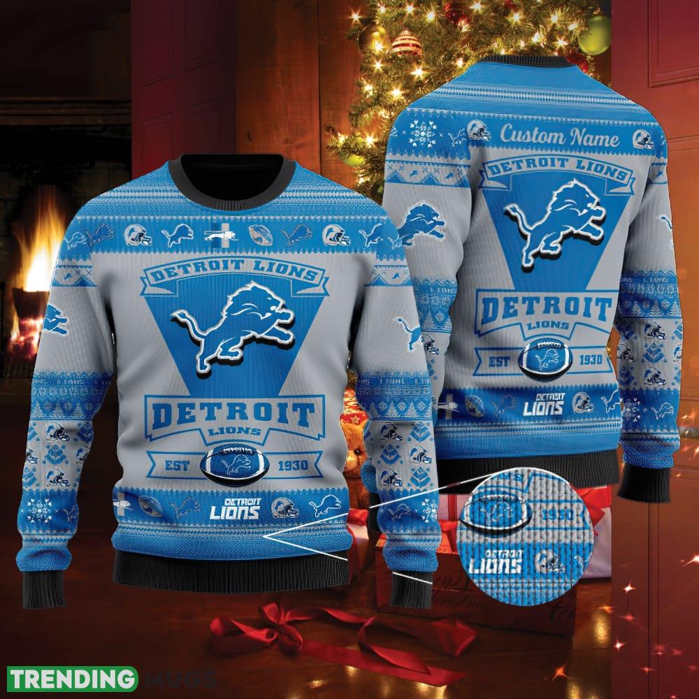 Get ready to show off your team spirit this holiday season with the Detroit Lions Football Team Logo Knitted Christmas Sweater AOP Party Custom Name.