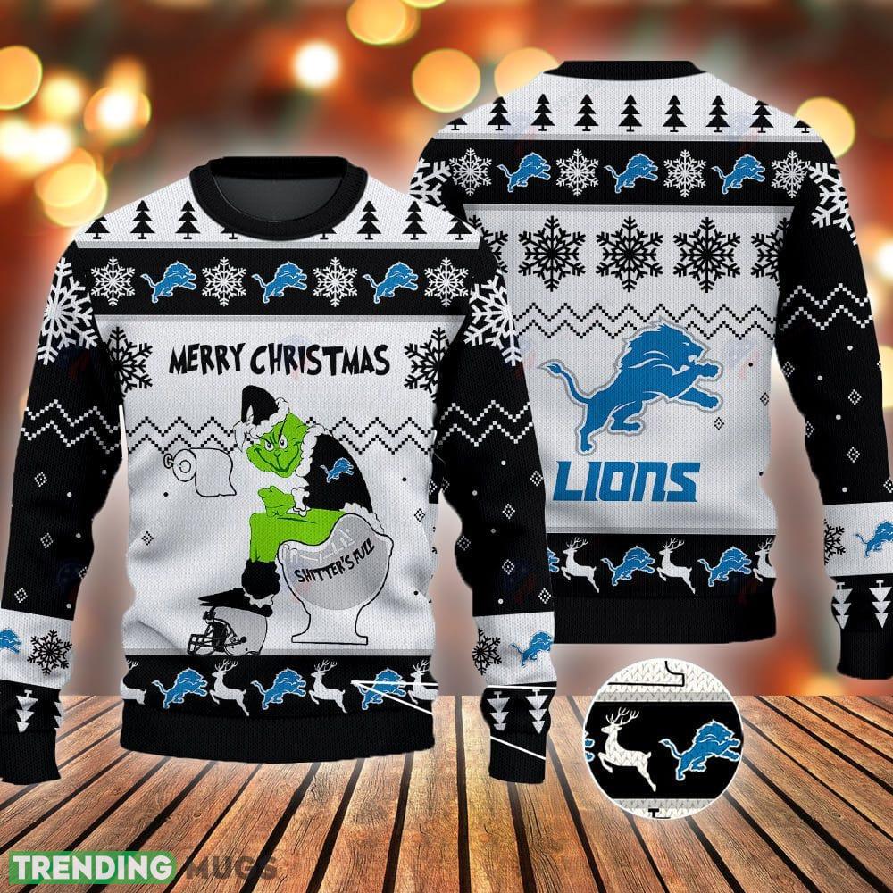 Whether you’re attending an ugly sweater party, cheering on the Lions from the comfort of your own home, or simply spreading some holiday merriment, our Detroit Lions Grinch Shitter’s Full NFL Black Ugly Christmas Sweater is the perfect choice. It’s not just a sweater; it’s a statement piece that showcases your love for the team and your sense of holiday fun.
