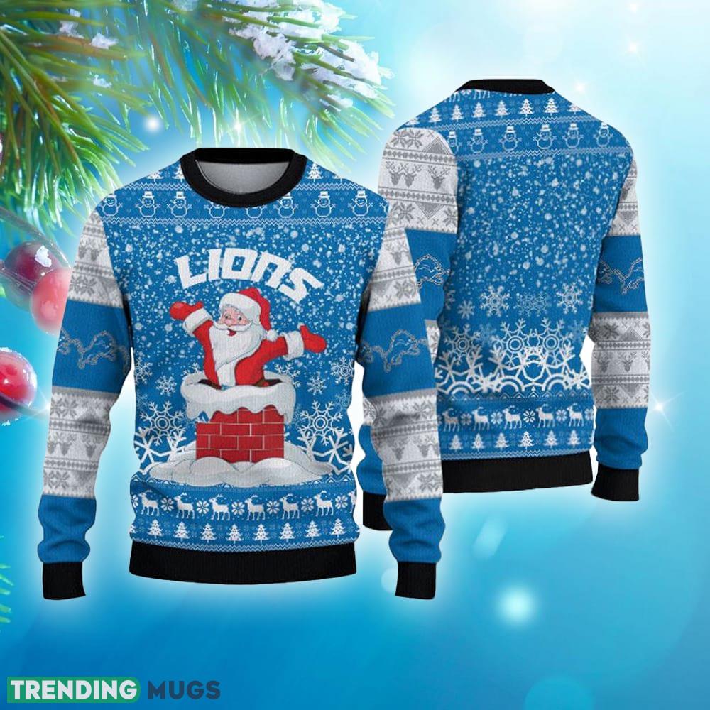 Detroit Lions Printed Funny Santa Claus Show Team Spirit NFL Ugly Christmas Sweater