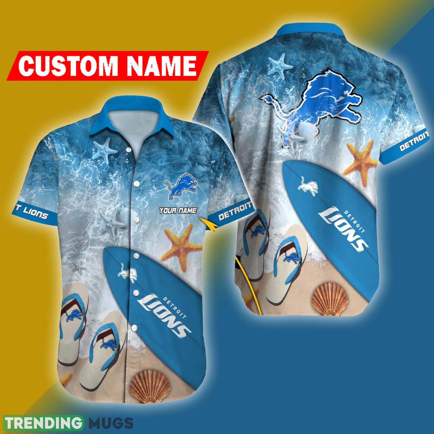 Detroit Lions Surfboard Pattern Custom Name Hawaiian Shirt Details: