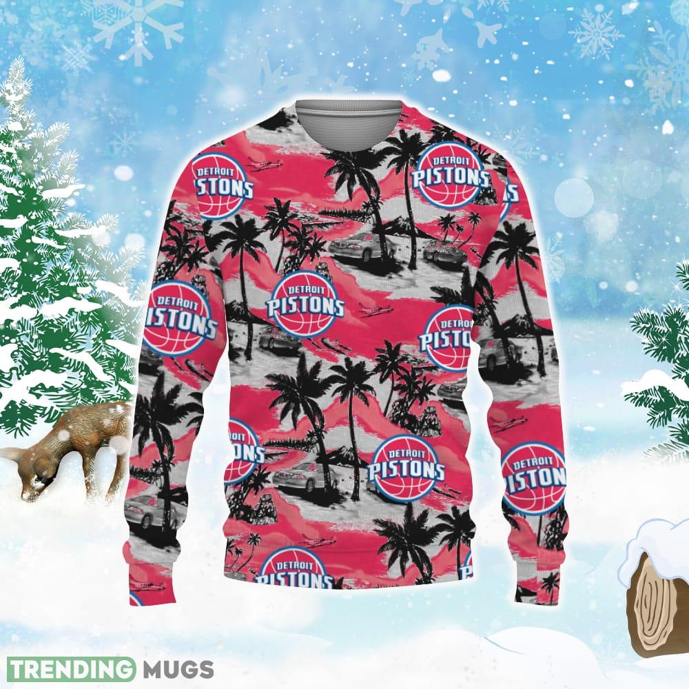 Detroit Pistons Tropical Patterns Ugly Christmas AOP Sweater Informations:
