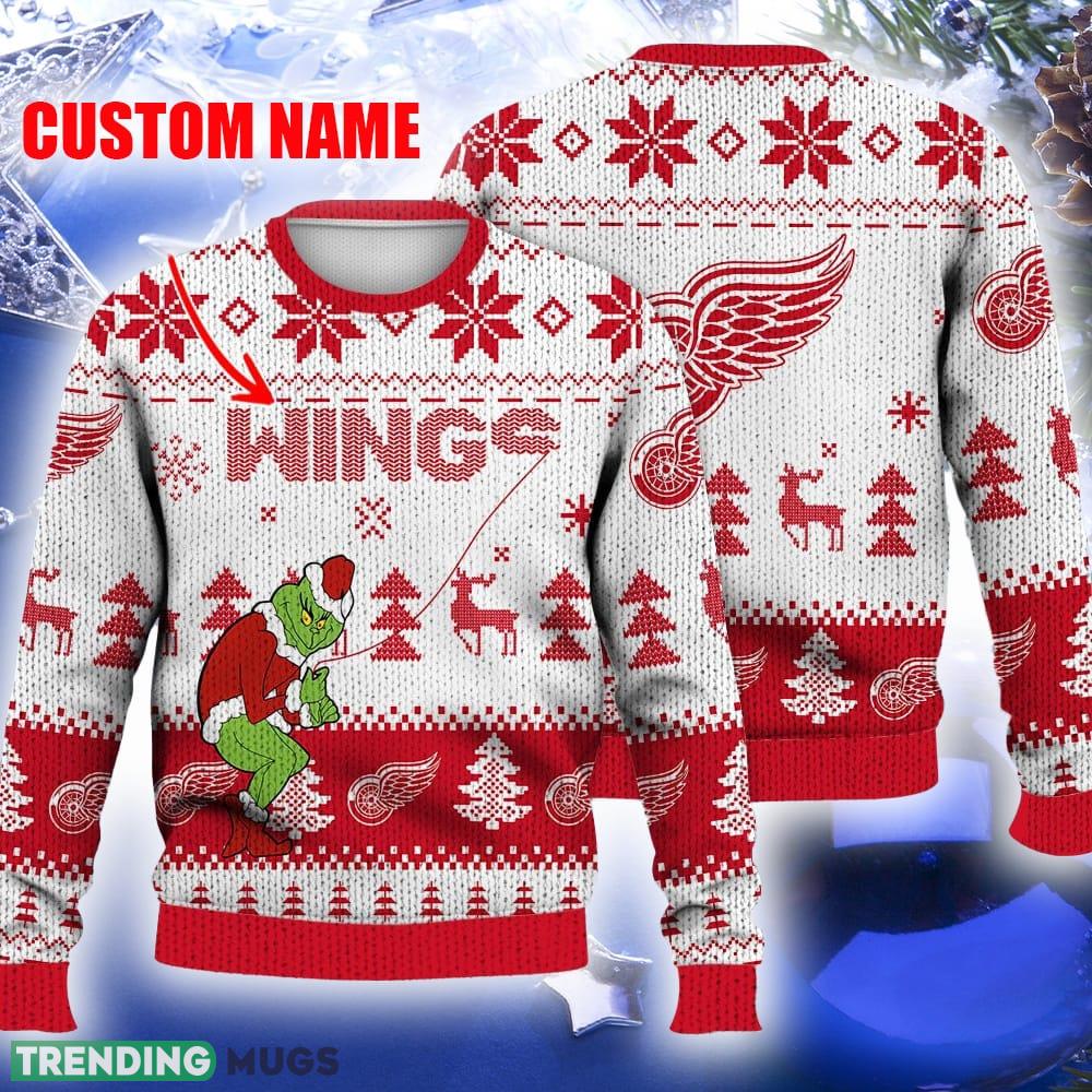 Detroit Red Wings Ugly Christmas Sweater Grinch Custom Ice Hockey NHL Gift For Christmas Holidays Custom Name 3D Sweater