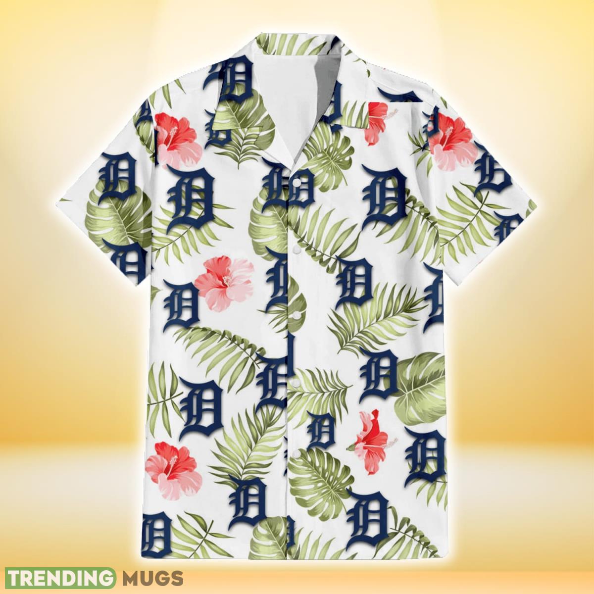 So why wait? Grab your Detroit Tigers Light Salmon Hibiscus Green Leaf White Background 3D Hawaiian Shirt today and let your fandom shine bright!