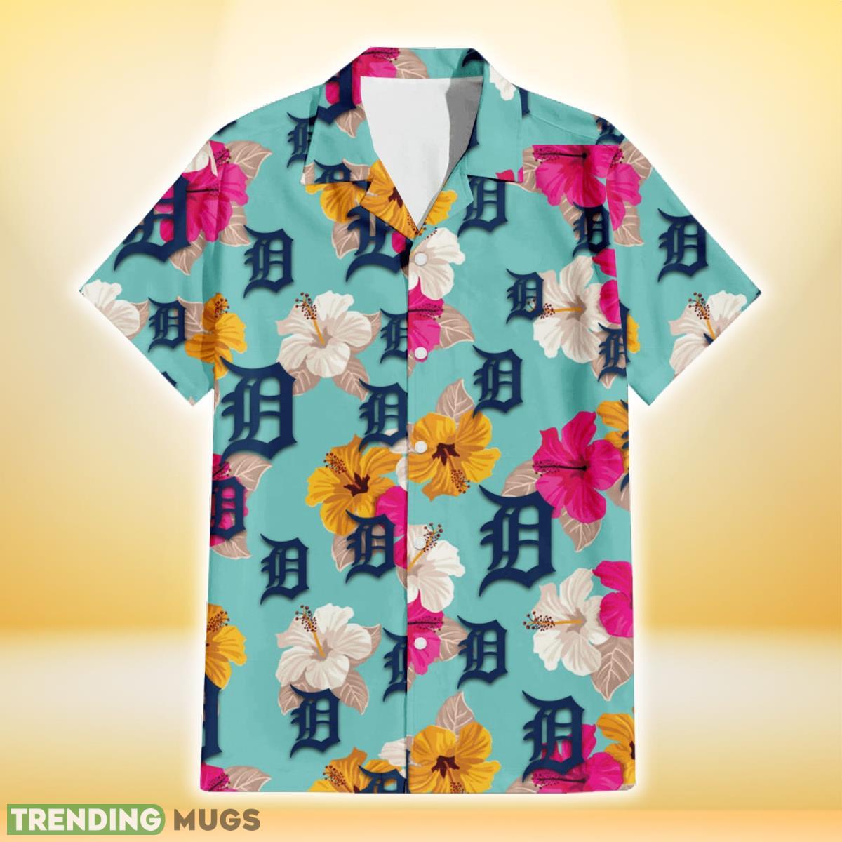 Stand out from the crowd and let your love for the Detroit Tigers shine with our Pink Yellow White Hibiscus Turquoise Background 3D Hawaiian Shirt. Grab one for yourself or surprise a fellow fan with this unique gift. Order now and show your support in style!