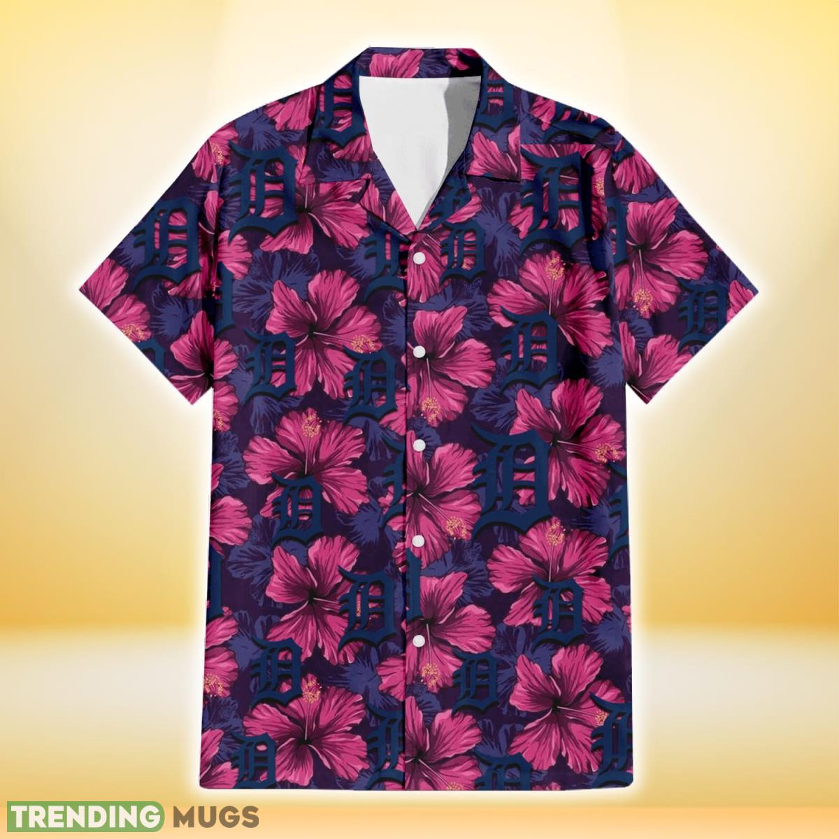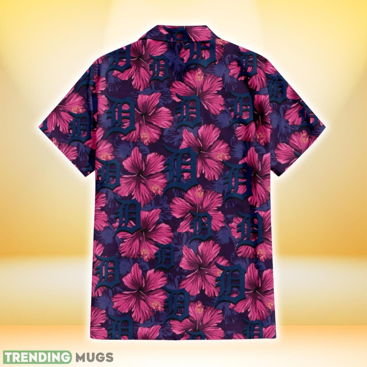 Featuring a unique blend of vibrant plum violet and hibiscus patterns against a dark navy leaf background, this shirt is a true standout. The intricate 3D design adds depth and dimension, making it impossible to go unnoticed. Whether you’re heading to a game at Comerica Park or simply want to make a bold statement, this shirt is a must-have addition to your Tigers collection.