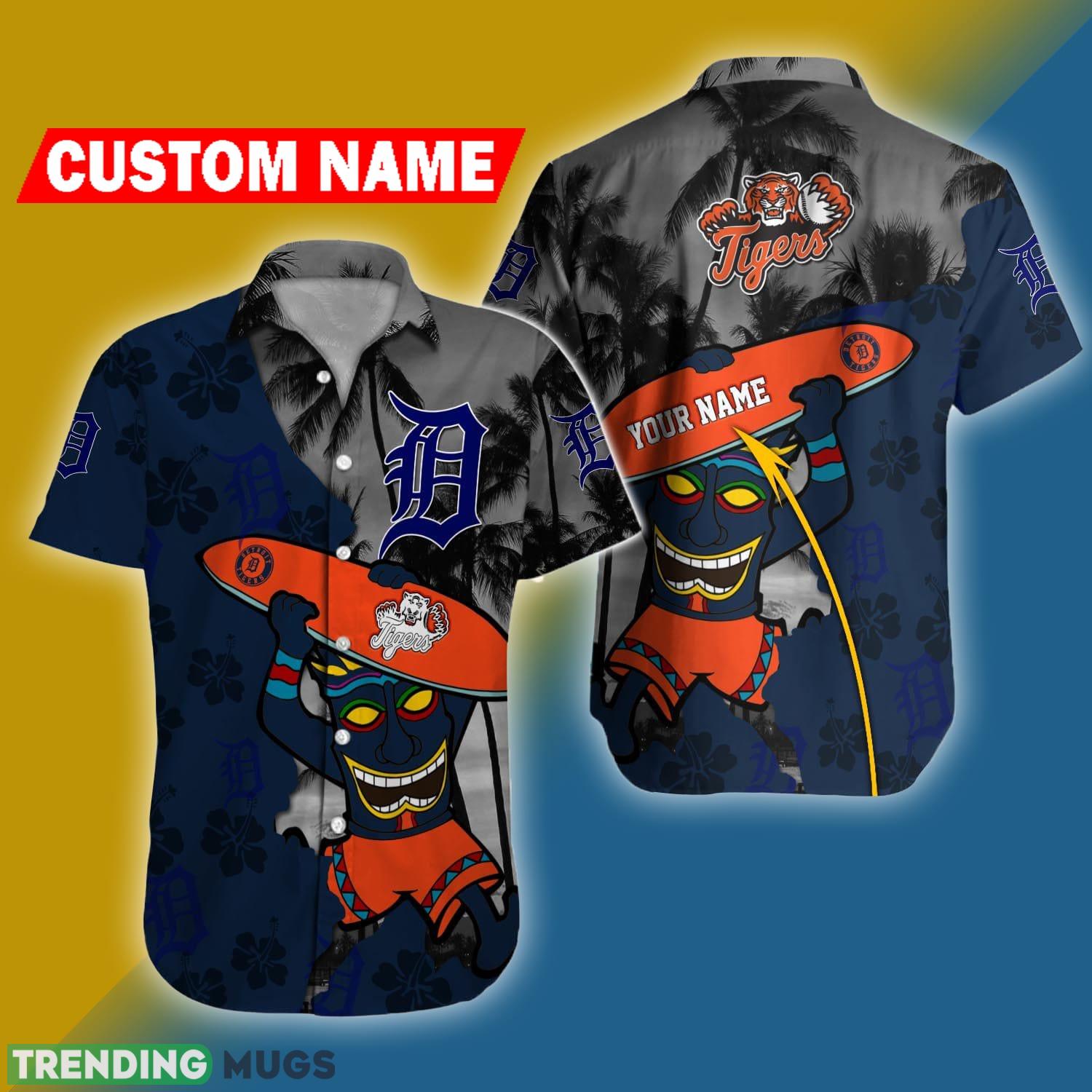 Detroit Tigers Surfboard Pattern Custom Name Hawaiian Shirt Details: