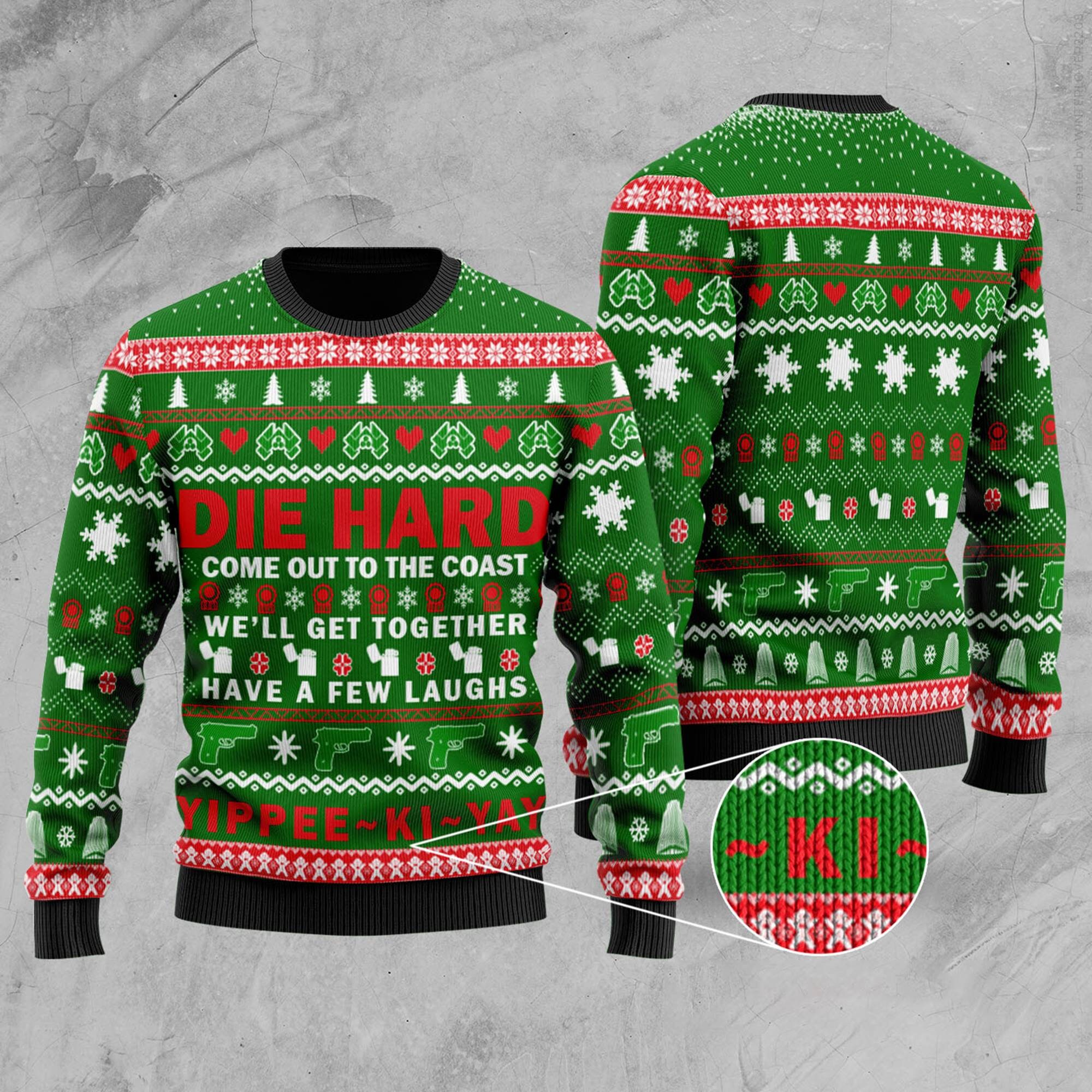 Crafted with high-quality materials, this sweater is not only stylish but also durable, ensuring that it will be a staple in your wardrobe for years to come. The eye-catching design features bold colors and a unique pattern that showcases your love for Die Hard and its fearless protagonist.