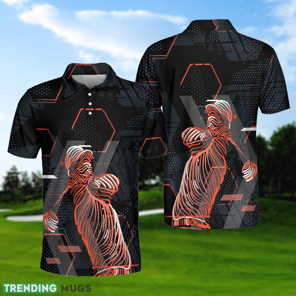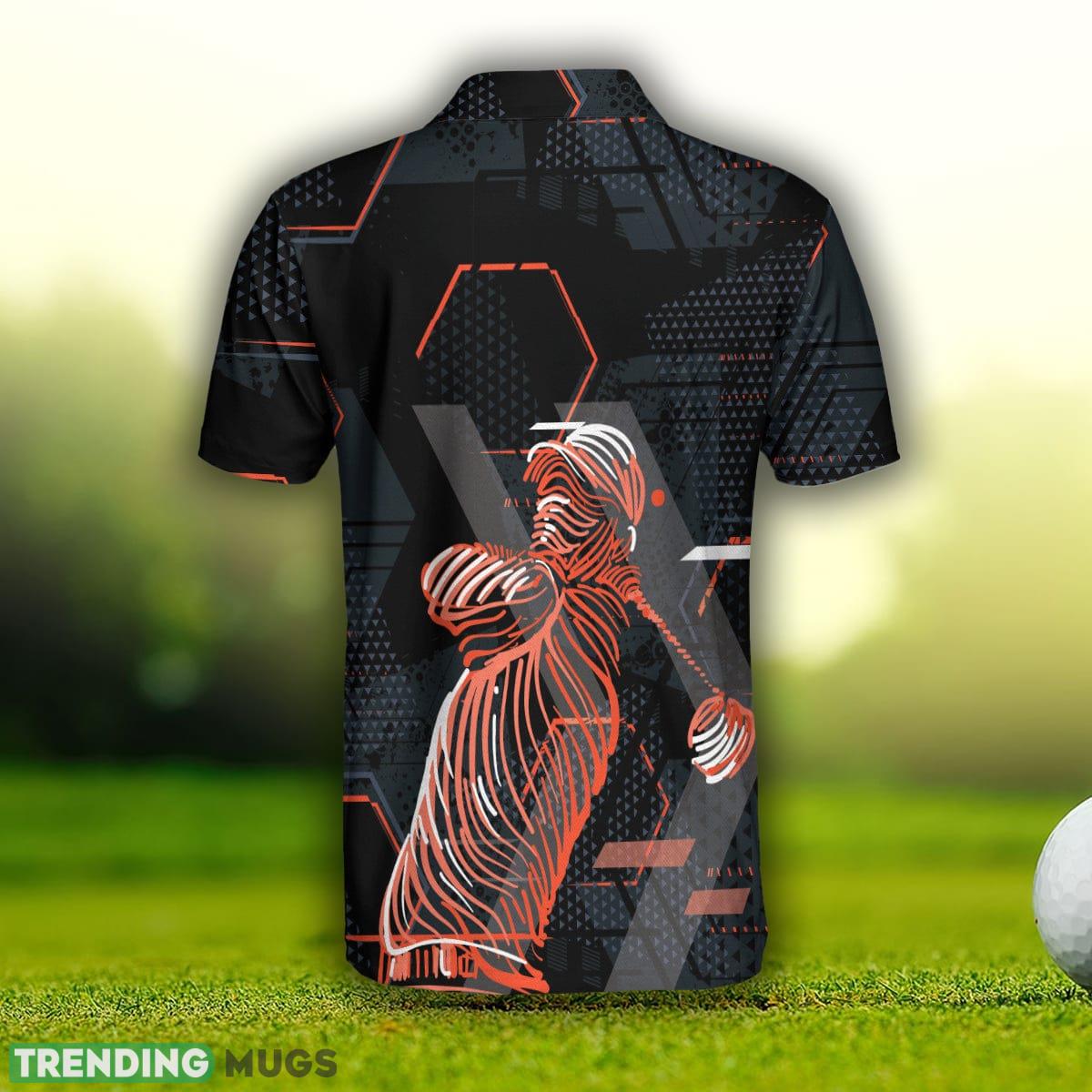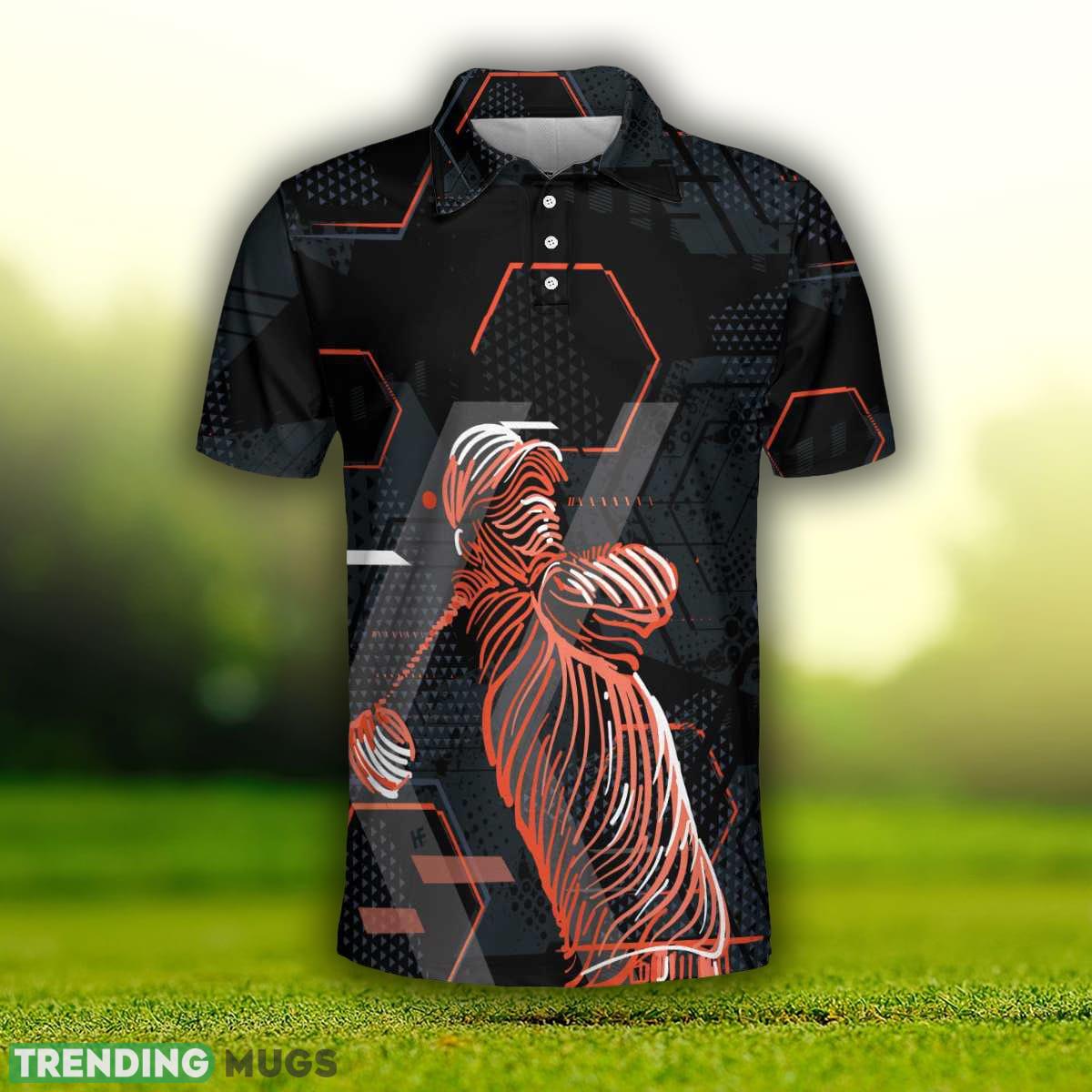 Digital Orange Golfer Golf, Short Sleeve Orange And Black Golf Shirt Polo Shirt Polo Shirt