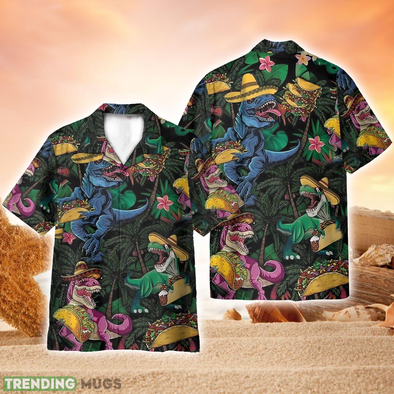 Dinosaur Love Tacos Coconut Tree Pattern 3D Hawaiian Shirt Holiday Gift Details: