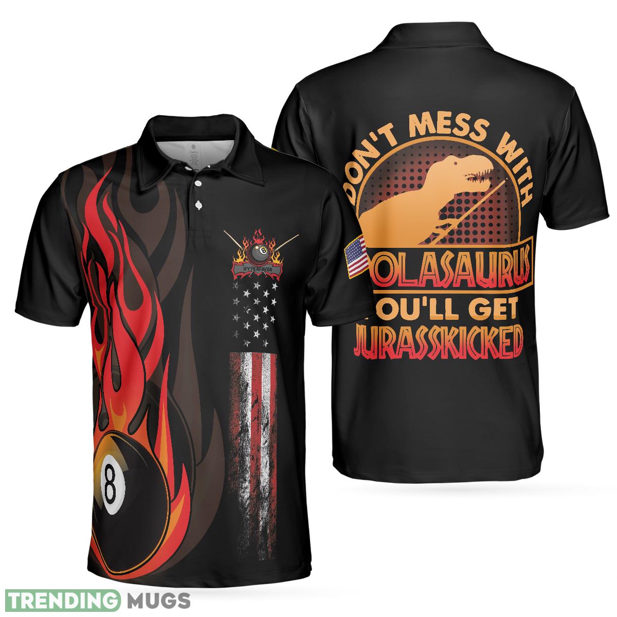 Whether you’re a seasoned billiards player or just starting out, our Dinosaur Poolasaurus Flame Skull Billiards Polo Shirt is a must-have addition to your wardrobe. Perfect for both casual and competitive games, this shirt will make you feel like a true champion every time you step up to the table.