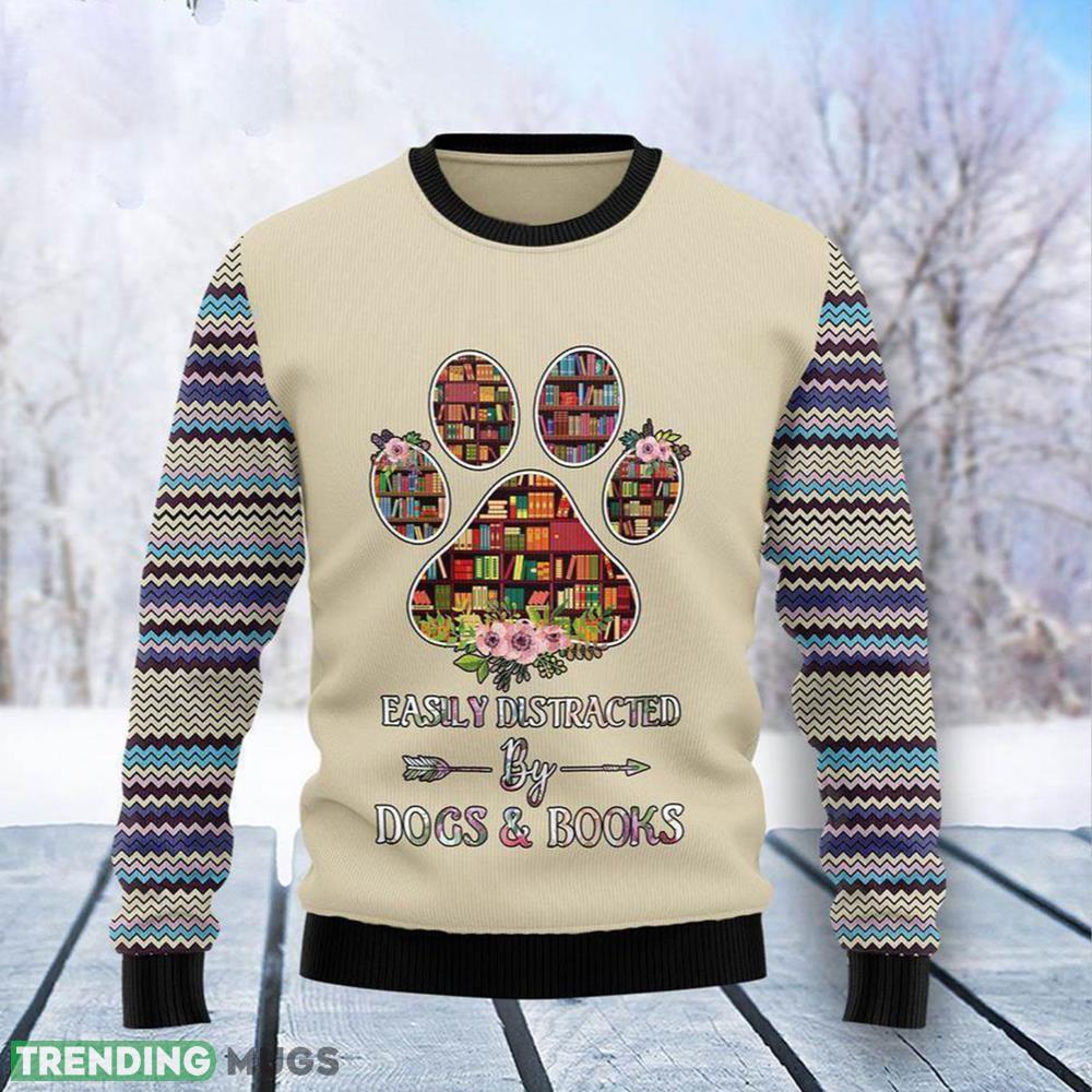 Dog Easily Distracted Book And Dogs Christmas Sweater Gift For Men And Women Informations: