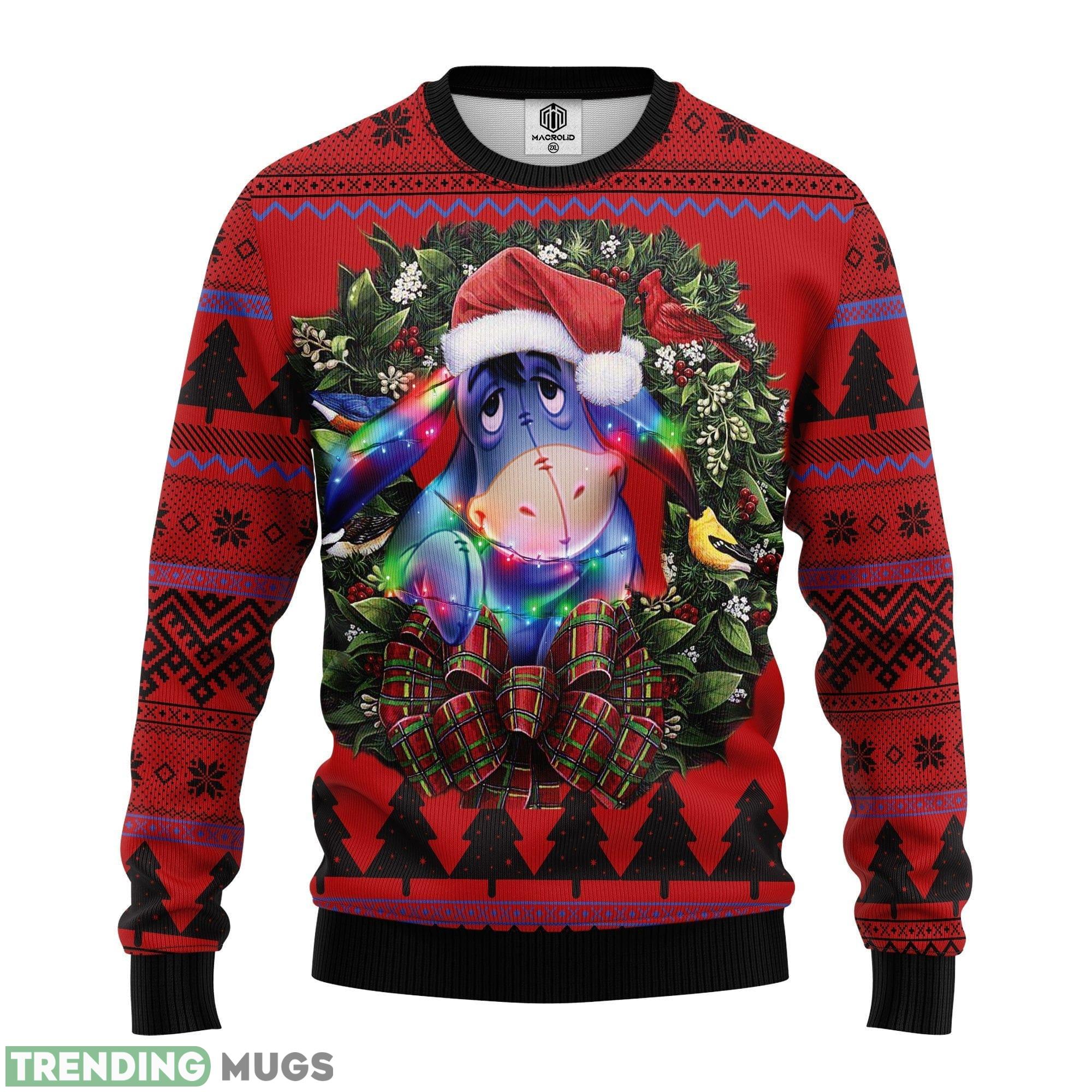 Featuring a whimsical design inspired by everyone’s favorite honey-loving bear, Winnie the Pooh, this sweater is sure to bring a smile to your face and warm your heart. The playful combination of classic holiday elements and the lovable characters from the Hundred Acre Wood creates a truly unique and eye-catching design.