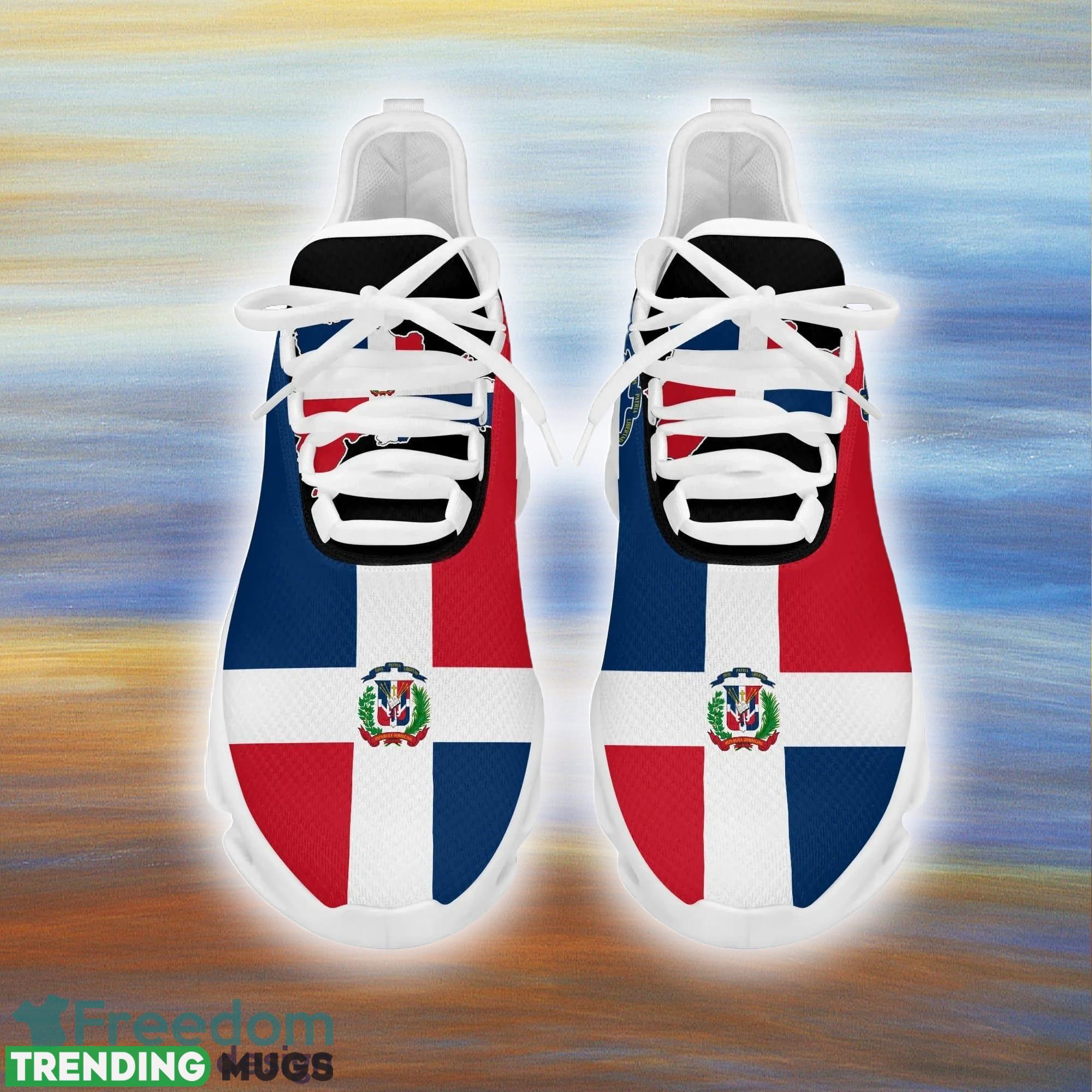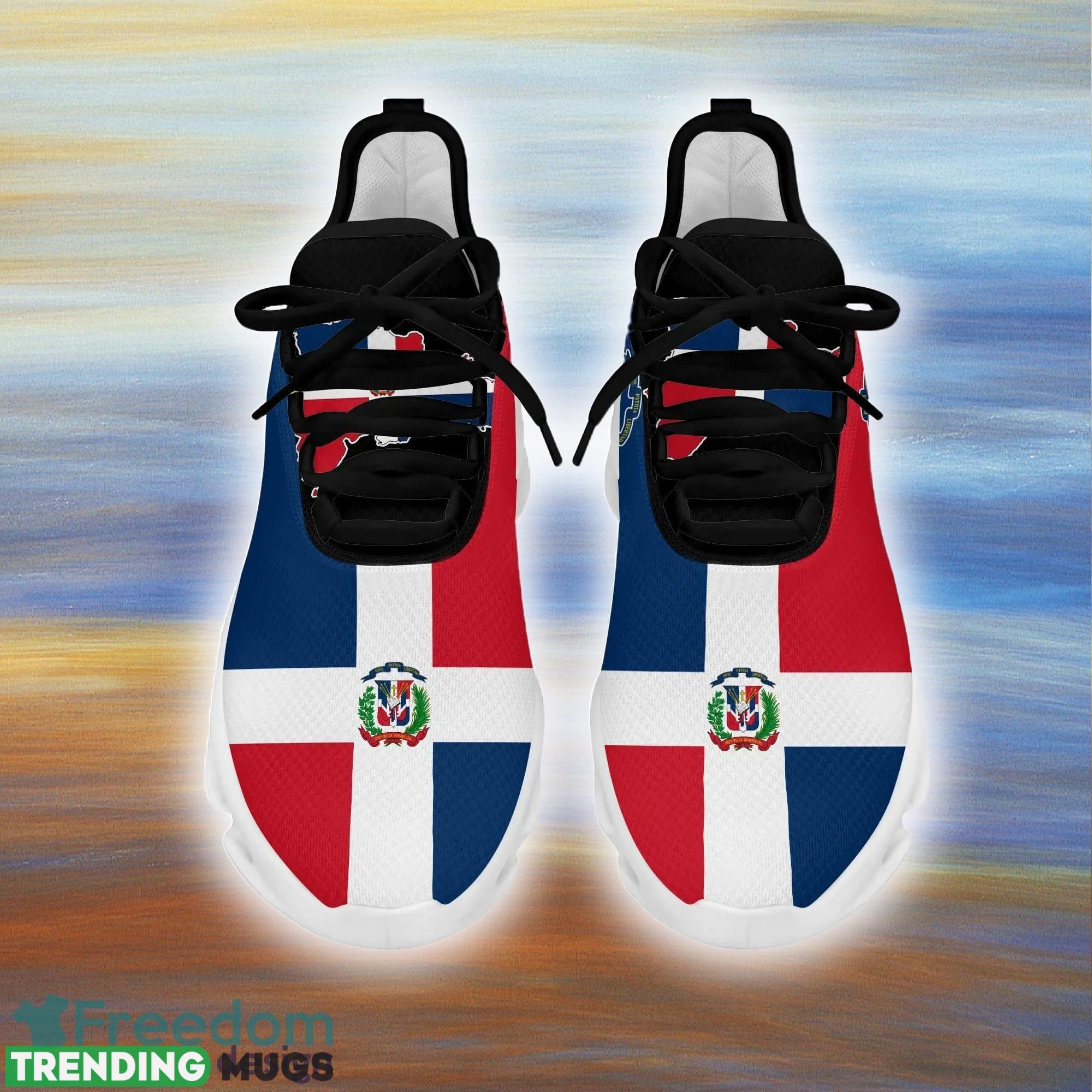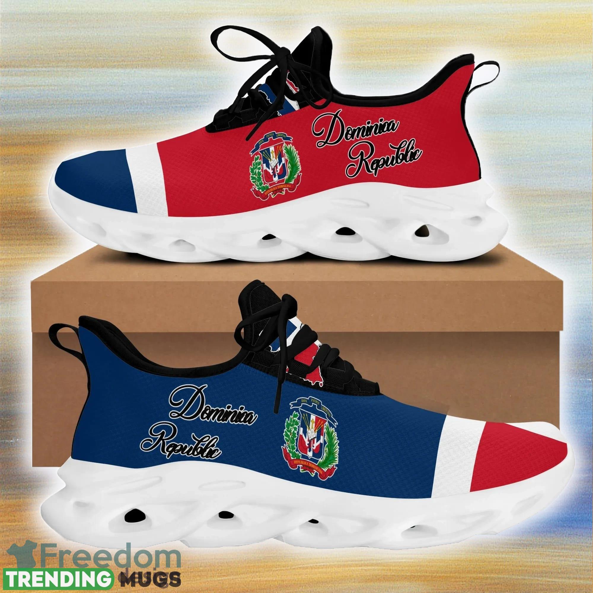 This Dominica Republic Clunky Max Soul Shoes For Men And Women Sports Unisex Sneakers is a breathable, lightweight, and comfortable casual outdoor shoe that has a unique design. It is made of a mesh fabric which makes it sweat absorbent and breathable, while the rubber bottom ensures traction, comfort, and durability. It is available in two colors: black or white sole. There are two styles of shoelace holes so you can choose your preference.