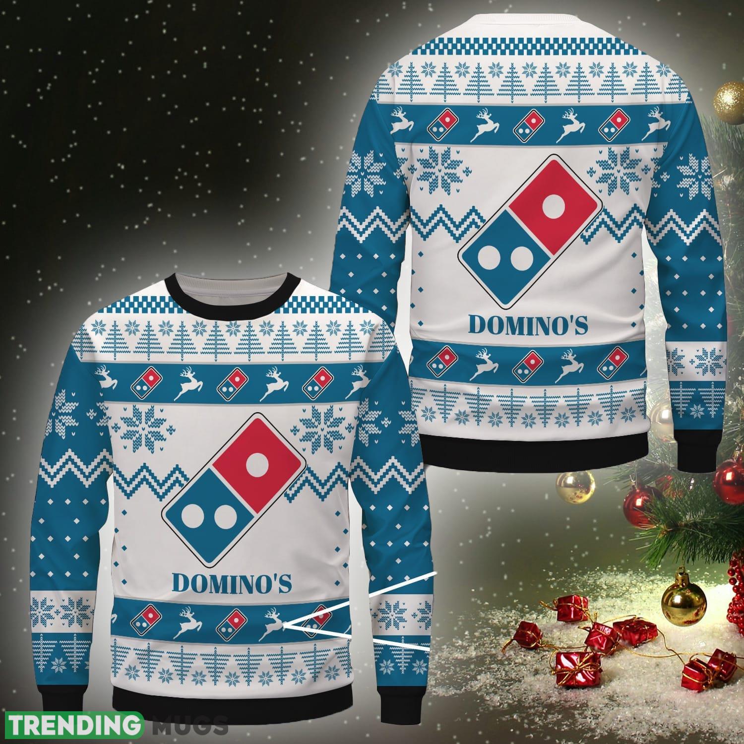 Crafted with utmost attention to detail, this cozy sweater features a delightful design inspired by everyone’s favorite pizza joint, Domino’s. With its vibrant white color and playful graphics, it’s guaranteed to spread holiday cheer wherever you go.