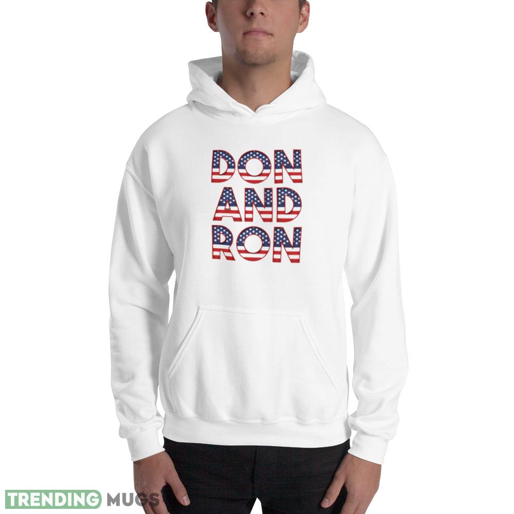 Featuring a bold and eye-catching design, this white tee showcases the clever combination of Don and Ron Trump DeSantis, two influential names in the political world. It’s a fun and lighthearted way to show your support for their potential run in 2024. Whether you’re attending rallies, hanging out with friends, or simply running errands, this t-shirt is sure to turn heads and spark conversations.