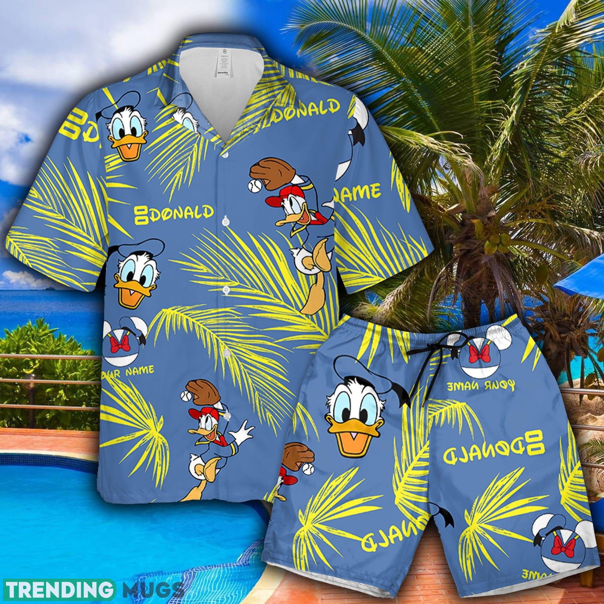 Donald Catch The Ball Hawaiian Shirt And Short Palm Leaves Custom Name Summer Gift For Men And Women Details: