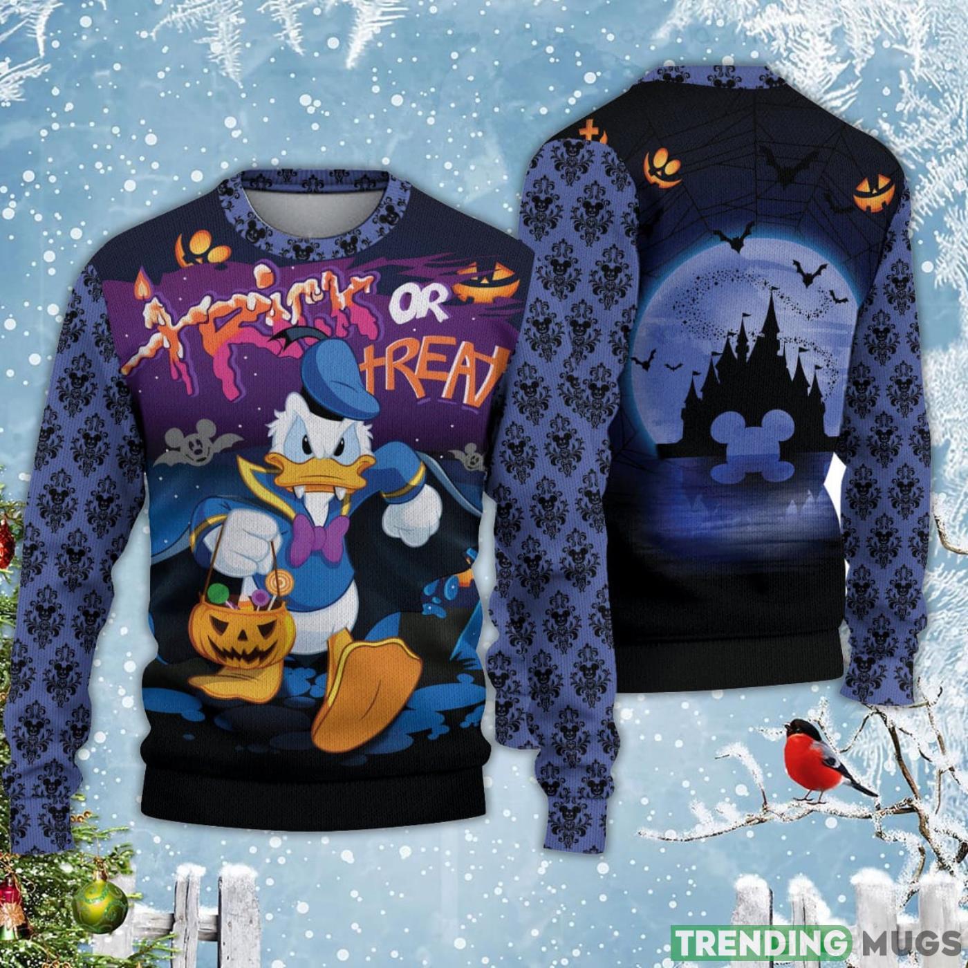 Donald Duck Trick Or Treat Halloween Black Blue Ugly Christmas Sweater Informations: