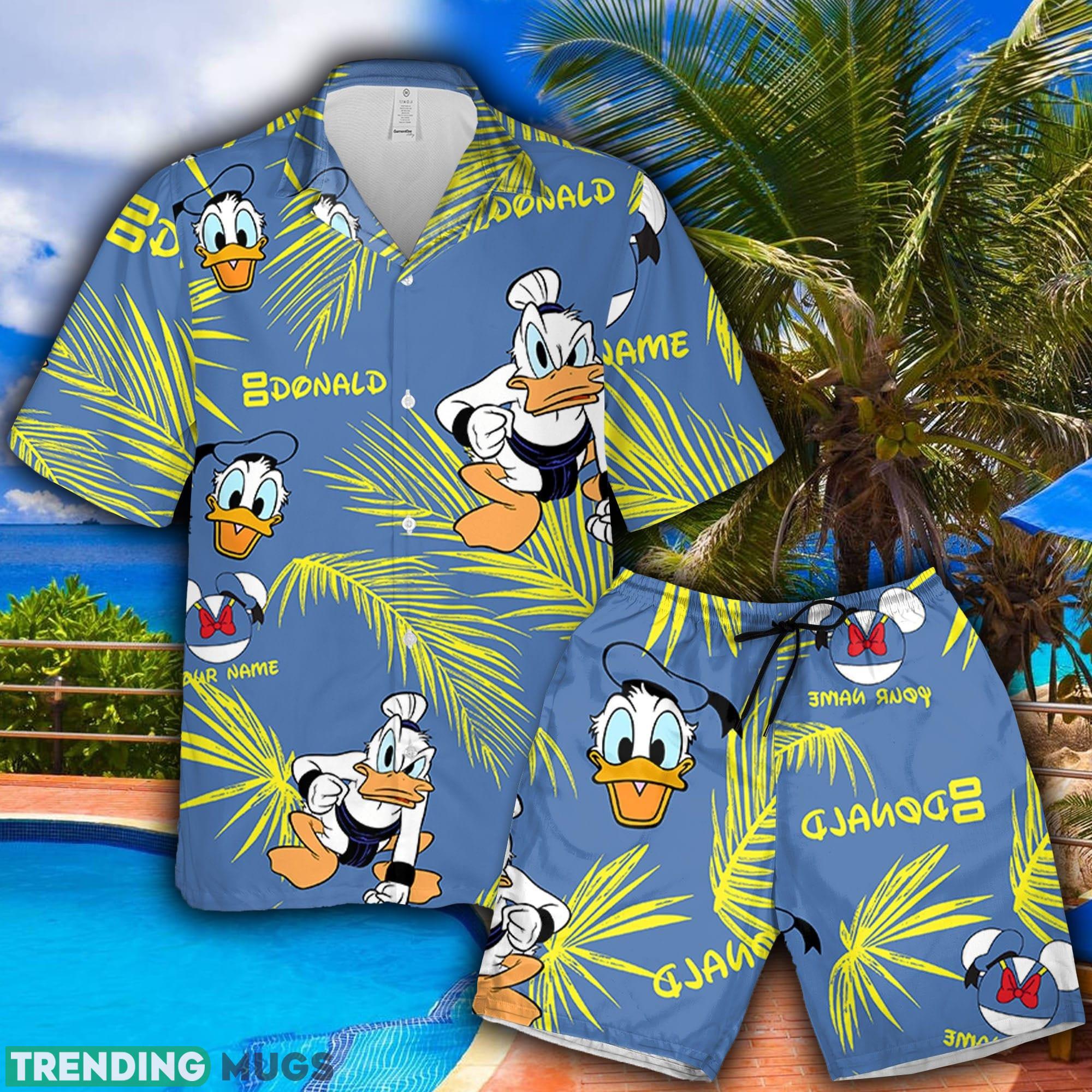 The eye-catching palm leaves pattern, adorned with a playful Donald Sumo twist, instantly transports you to the sandy beaches and sunny shores of Hawaii. Whether you’re sipping on a refreshing drink by the pool or dancing the night away at a beach party, this ensemble is designed to turn heads and make you the center of attention.