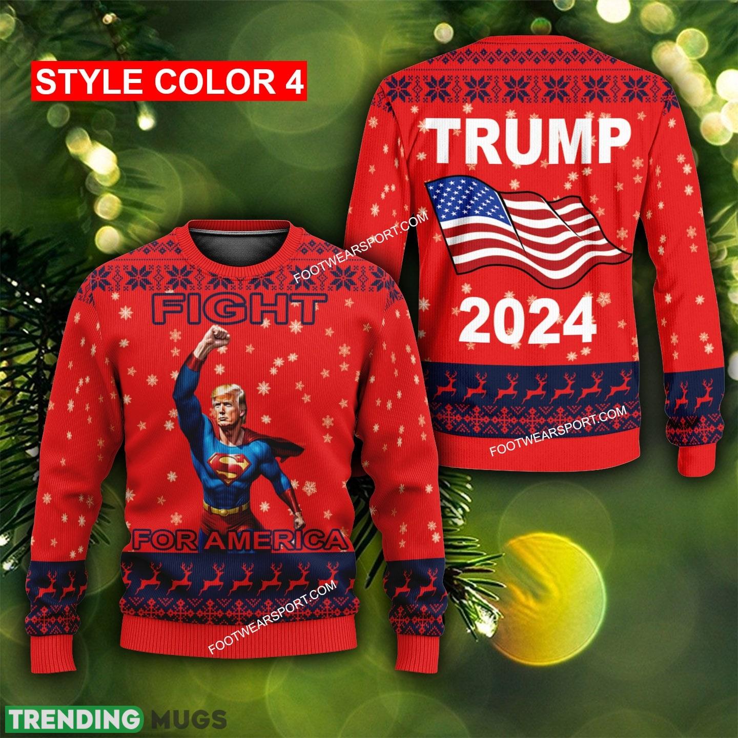 Get ready to show your support for the one and only Donald Trump with this eye-catching sweater! Featuring a 3D design of Trump as Superman raising his right arm with a fist, this sweater is the perfect way to stand out and make a statement. The bold red color and trendy design make it a hot item for fans of the former president. Stay warm and stylish this season while proudly displaying your support for Trump. Don’t miss out on this must-have piece for any Trump supporter!