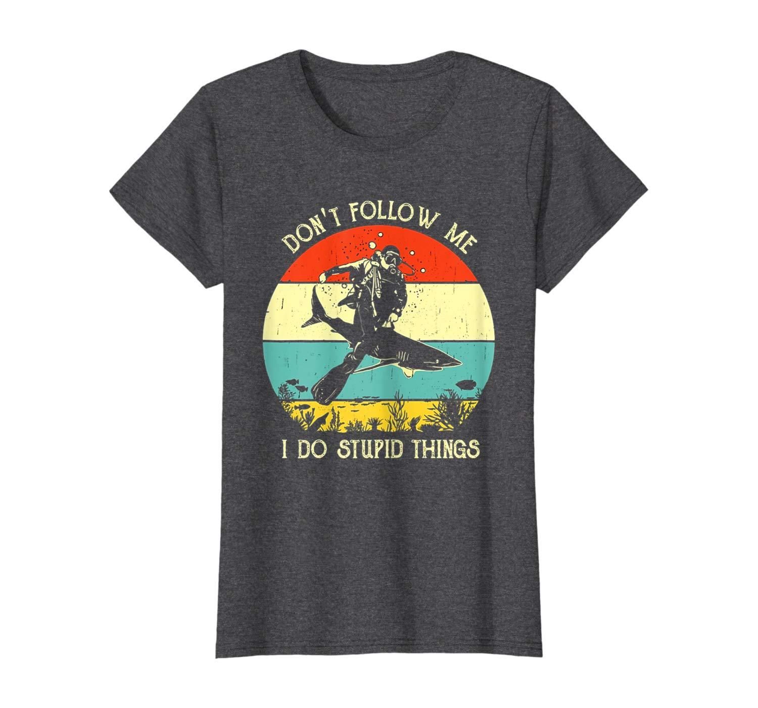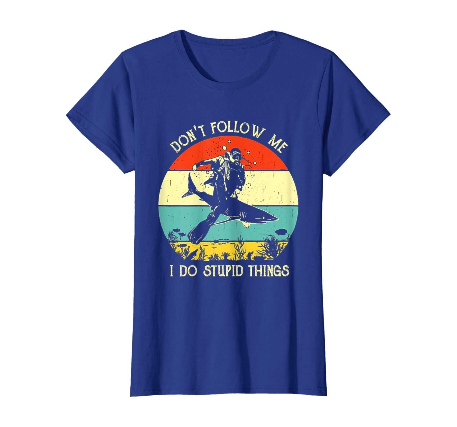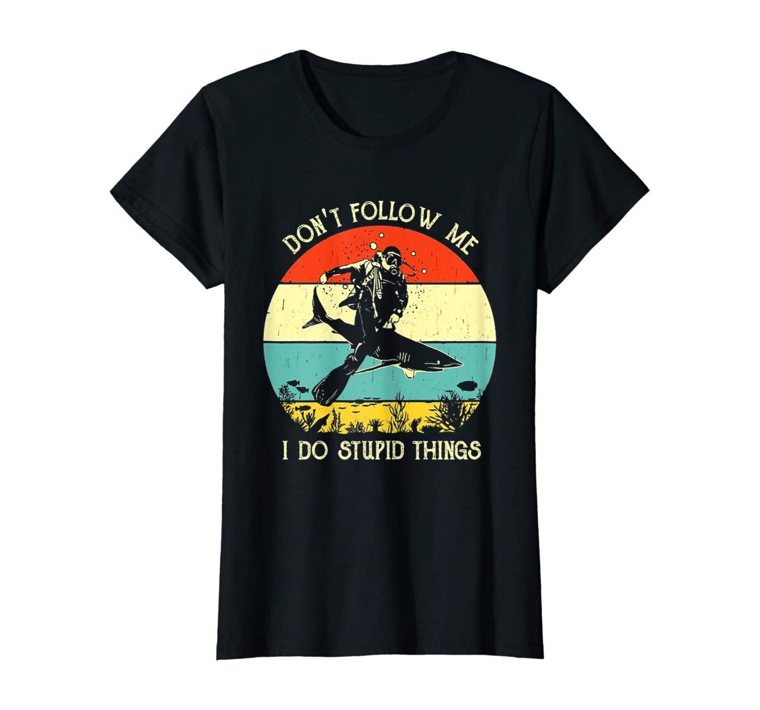 • Do not follow me i do stupid thing scuba diving shark vintage retro sunset lover gift vintage retro shark underwater diving lover gift dive with shark vintage retro tee